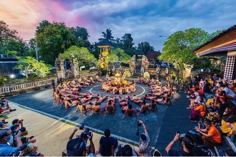 울창한 우붓에서 즐기는 특별한 경험! 폭포, 논, 몽키 포레스트 등 다양한 명소와 함께 케착 댄스와 파이어 댄스를 만나보세요. 케착 댄스는 발리 힌두교의 서사시 라마야나에서 라마가 원숭이 신 하누만의 도움을 받아 악마 왕 라바나와 싸우는 장면을 묘사한 발리 전통 춤입니다.