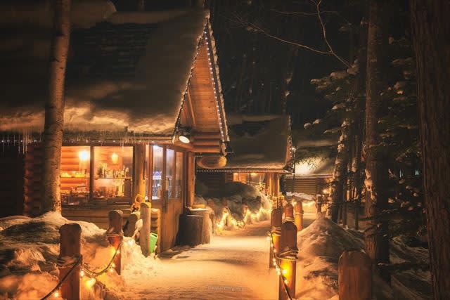 【후라노】 홋카이도 후라노 '닝글 테라스'에서 눈의 요정 세계로 함께 떠나보세요! 신후라노 프린스 호텔 바로 앞에 있는 닝글 테라스에는 다양한 특색 있는 수공예품점, 수제 체험 공방 및 카페가 있습니다. 나무 산책로를 따라 15개의 작은 통나무집을 지나게 되는데, 각 집마다 장식 테마가 달라 매우 독특합니다. 요정이 언제든지 나타날 것 같은 몽환적인 공간으로, 길에는 나무 데크 계단과 긴 벤치가 있어 산책 도중 앉아서 휴식을 취하며 숲 속의 고요함을 느낄 수도 있습니다. 밤에 불이 켜진 숲 속에는 흰 눈으로 덮인 삼각형 통나무집이 흩어져 있어 마치 요정의 나라에 잘못 들어온 듯한 동화 세계처럼 매혹적입니다.