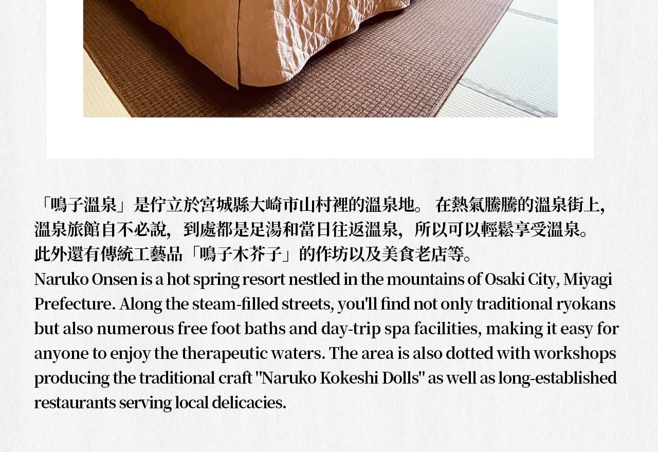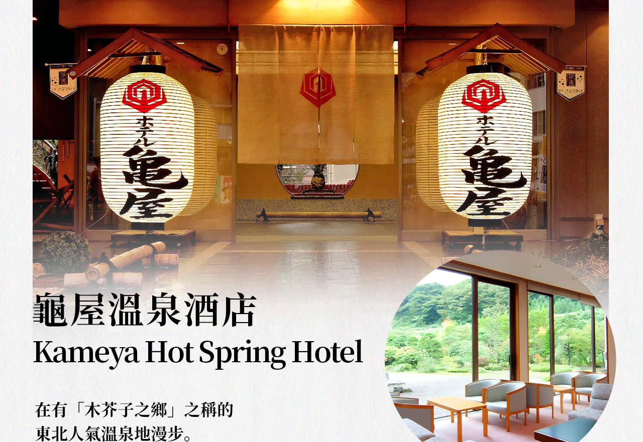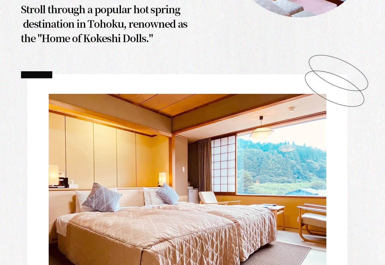 # 저녁에는 나루코 지역 온천 호텔에 숙박하여 온천탕에서 여행의 피로를 풀고 맛있는 일본 요리를 즐기세요.