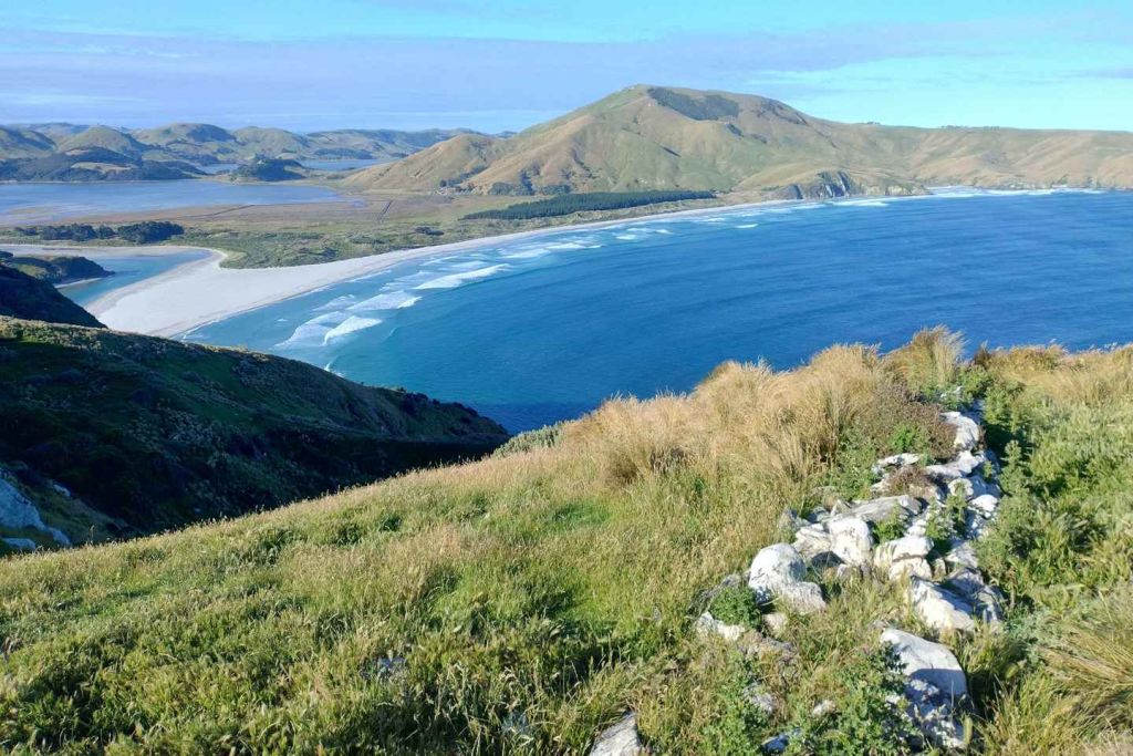 샌드플라이 베이 전망대 - 깨끗한 해변이 내려다보이는 이곳은 바다사자와 물개를 안전한 거리에서 관찰할 수 있는 환상적인 장소입니다.
