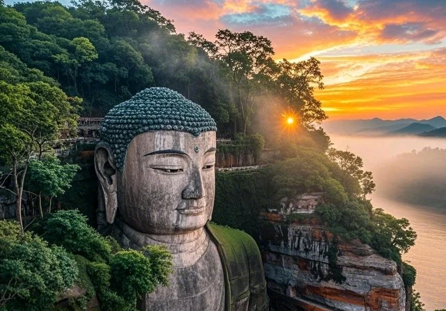 * 🗿러산대불景区(乐山大佛景区) 러산대불은 세계 문화 및 자연 복합 유산으로, 당나라 시대의 미륵좌상입니다. 높이가 71m에 달하며, 중국 최대의 마애불상입니다.🌟 강을 마주보고 앉아 있으며, 능운산, 오우산과 함께 "부처, 산, 물"이 어우러진 장관을 연출합니다.