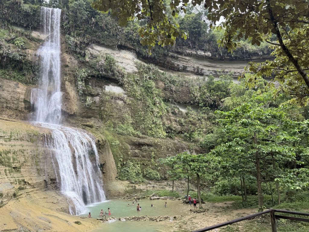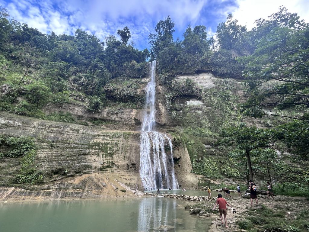45M 절벽에서 시원하게 쏟아지는 칸 우만타드 폭포에서는 수영을 하거나 오토바이를 타고 달리며 풍경을 구경합니다.