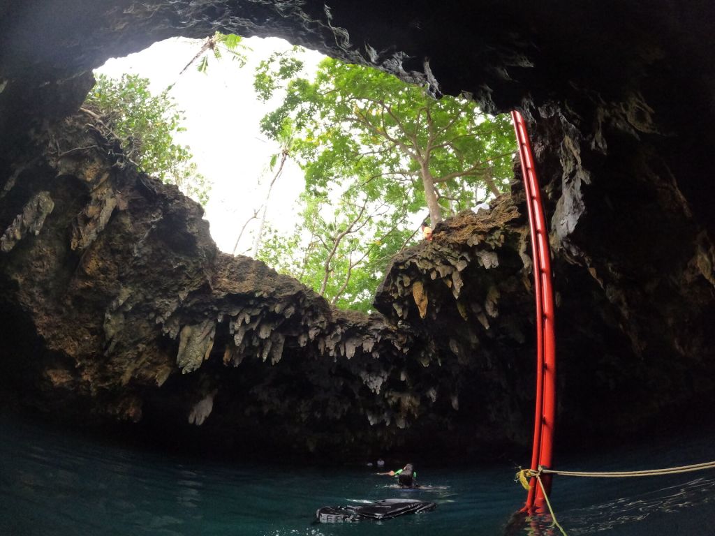 보홀의 블루라군 카박나우 동굴에서 수영을 경험할 수 있습니다.