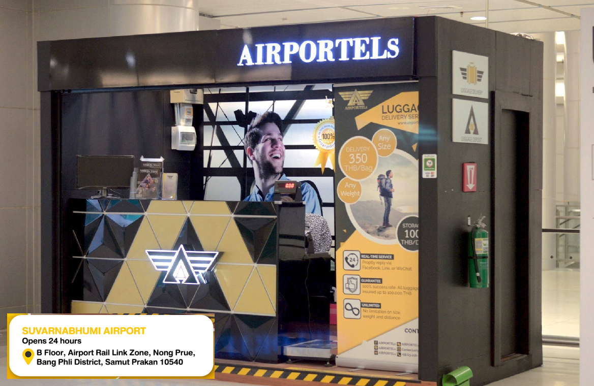 ▶ 이용방법 - 찾아가는 방법 수완나품 공항 B층, Airport Rail Link 존에 있습니다. [위치 확인하기](https://maps.app.goo.gl/YjXjvTofw92rDEn2A) - 수완나품 공항 → 호텔 배송 1. 짐 개수에 맞게 서비스 예약하기 (이용일 가방 예약 배송 3시간 전까지) 2. 공항 에어포텔 카운터에 짐 맡기기 • 오후 12:00시 전까지 공항 에어포텔 카운터에 짐 맡기기 3. 호텔에서 가방 수령 가능 • 호텔에서 20:00 이후 가방 수령 가능 - 수완나품 공항 → 돈므앙 공항 1. 짐 개수에 맞게 서비스 예약하기 (이용일 가방 예약 배송 3시간 전까지) 2. 수완나품 공항 에어포텔 카운터에서 맡기기 • 오후 12:00시 전까지 맡기기 3. 선택한 쇼핑몰 에어포텔 카운터에서 가방 수령 가능 • 쇼핑몰에서 18:00 이후 가방 수령 가능 3-1. 가방 수령 가능 쇼핑몰 • 터미널 21 아속 / 센트럴 월드(그루브 존,허그타이 존) / Mixt 짜뚜짝 / 아이콘시암 / 야와랏 차이나타운 / 엠스피어 / 엠포리움 3-2. 에어포텔 카운터 위치는 자세히 보기를 눌러서 확인하시기 바랍니다.[자세히보기](https://kr.airportels.asia/airportels-bangkok-location/) - 수완나품 공항 → 쇼핑몰 1. 짐 개수에 맞게 서비스 예약하기 (이용일 가방 예약 배송 3시간 전까지) 2. 수완나품 공항 에어포텔 카운터에서 맡기기 • 오후 12:00시 전까지 맡기기 3. 선택한 쇼핑몰 에어포텔 카운터에서 가방 수령 가능 • 쇼핑몰에서 18:00 이후 가방 수령 가능 3-1. 가방 수령 가능 쇼핑몰 • 터미널 21 아속 / 센트럴 월드(그루브 존,허그타이 존) / Mixt 짜뚜짝 / 아이콘시암 / 야와랏 차이나타운 / 엠스피어 / 엠포리움 3-2. 에어포텔 카운터 위치는 자세히 보기를 눌러서 확인하시기 바랍니다.[위치 확인하기](https://kr.airportels.asia/airportels-bangkok-location/) - 예약 ID를 사용하여 에어포텔 웹사이트에서 수하물 배송 상태를 쉽게 추적할 수 있어요 에어포텔 웹사이트> 상단 TRACK & TRACE > 몽키트래블 바우처 하단 컨펌번호 ex)LUG123456789 (LUG숫자 9개) 입력 -> 날짜 및 가방 개수 정보 확인 -> 가방 추적 가능[자세히보기](https://app.airportels.asia/tracking)