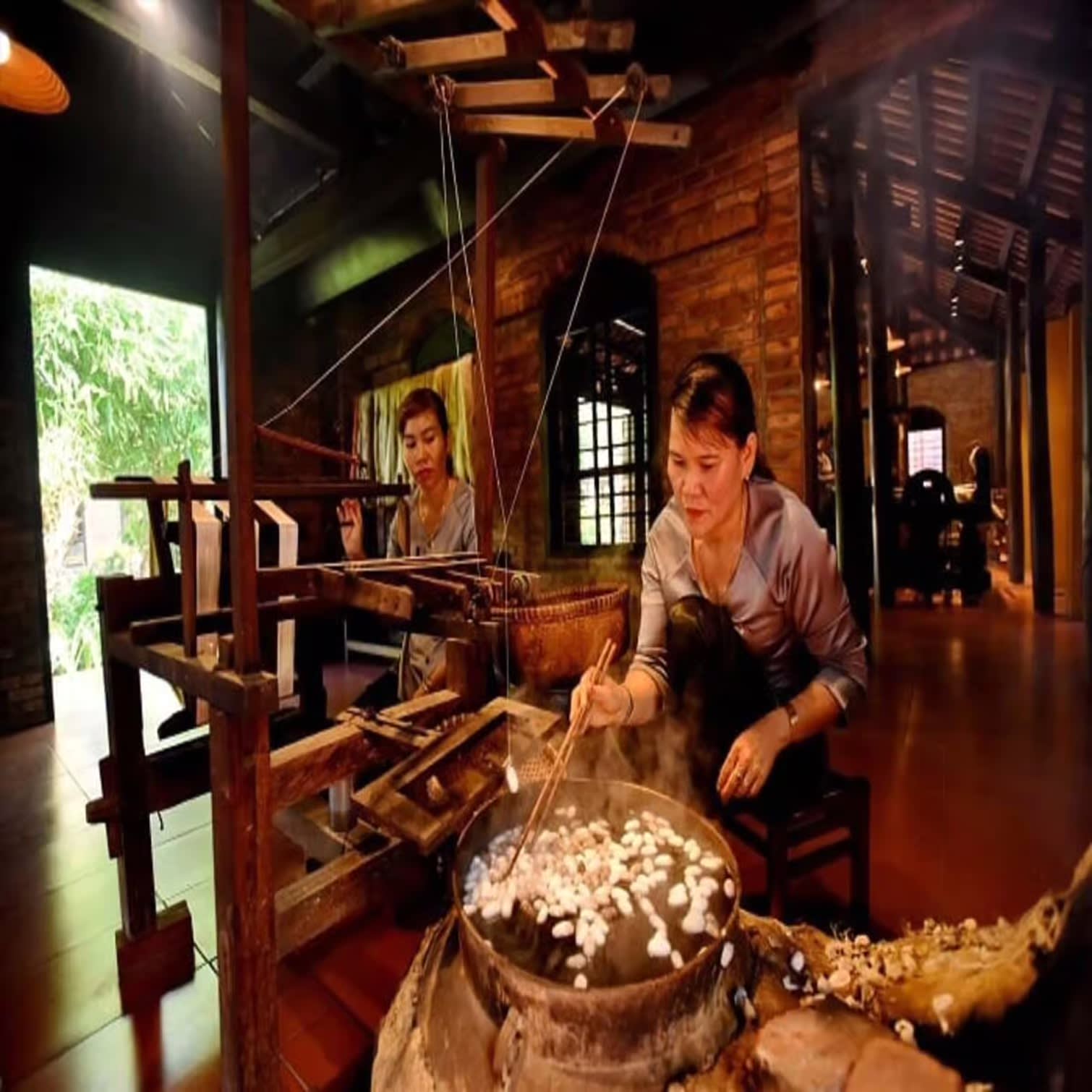 * 베트남 전통 직조 기술과 노하우를 통해 누에고치가 고운 실크 실이 되는 과정을 알아보세요.