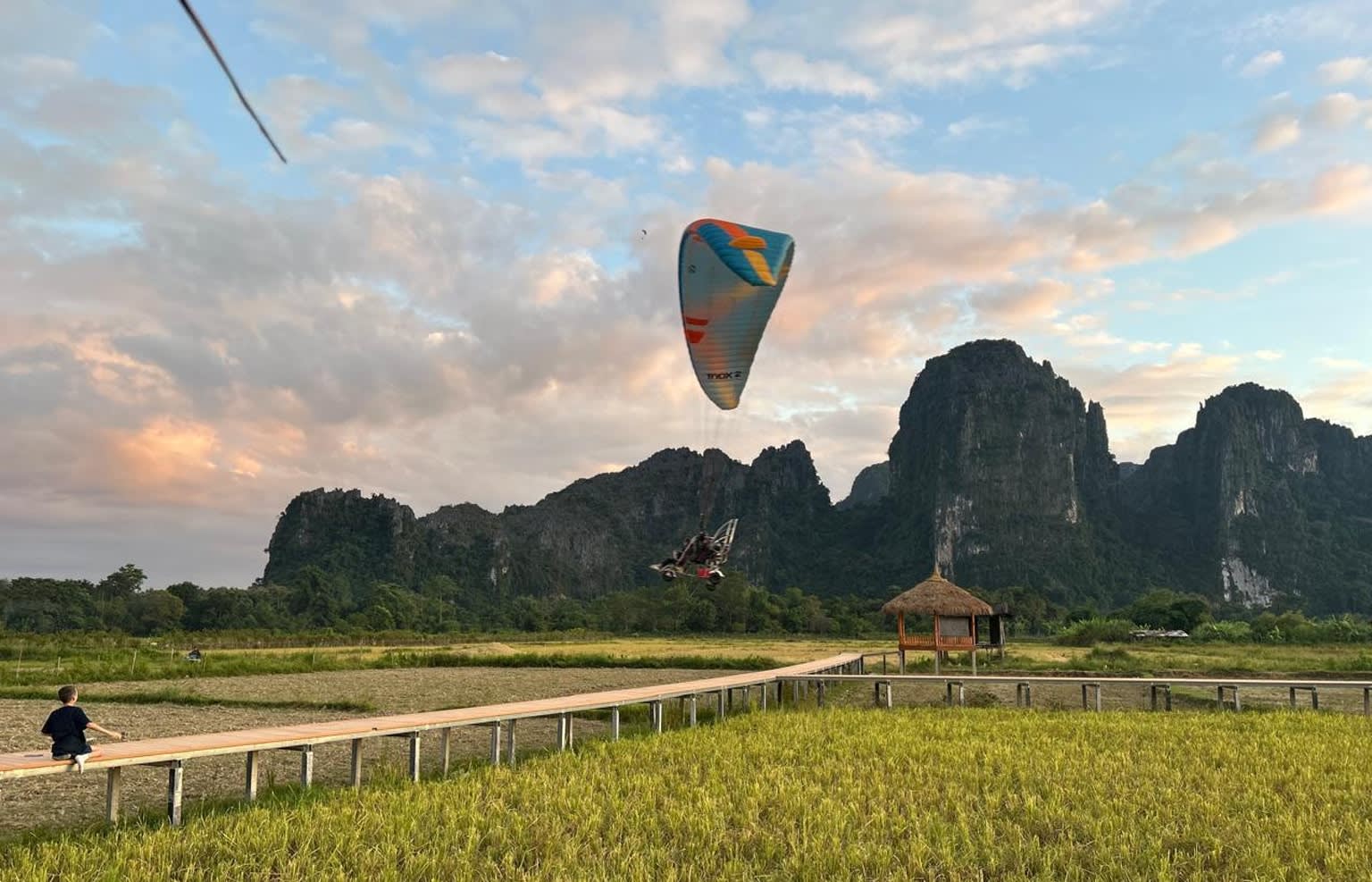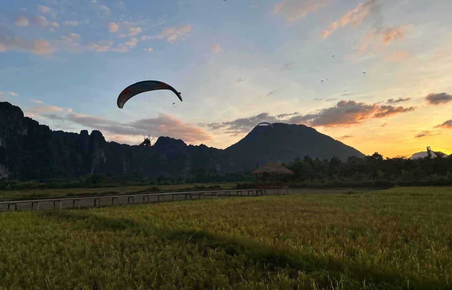 * 15분 동안 패러글라이딩을 하며 아름다운 방비엥의 절경을 하늘 위에서 감상하세요.