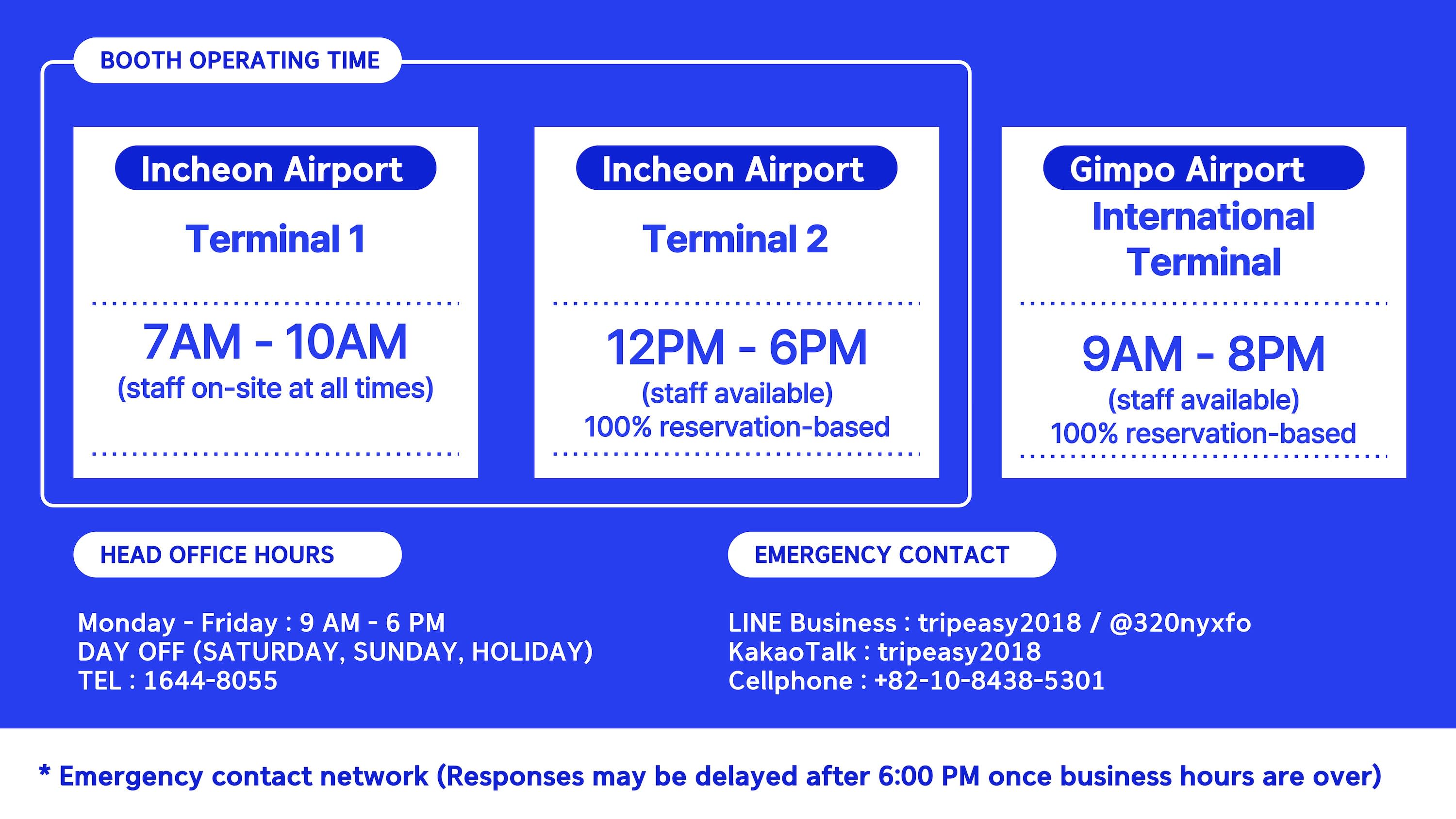 * 인천공항 제1터미널: 07:00-22:00 (KST)