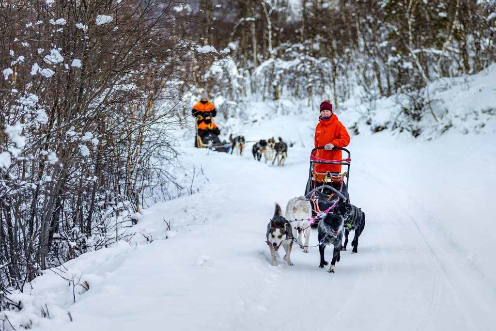 눈 덮인 트레일을 따라 허스키 팀을 안내하는 스릴을 경험하세요.