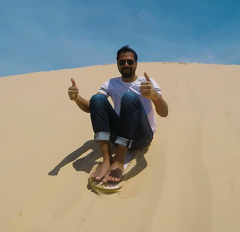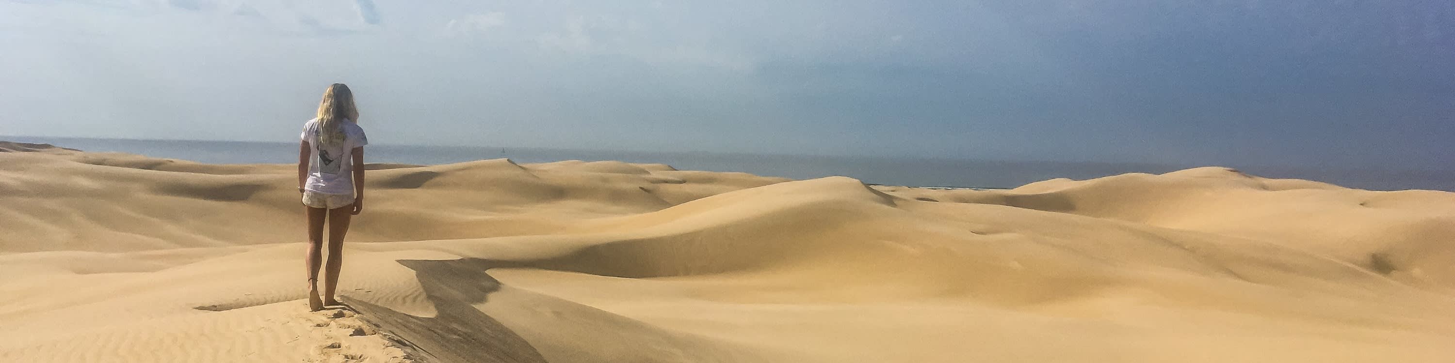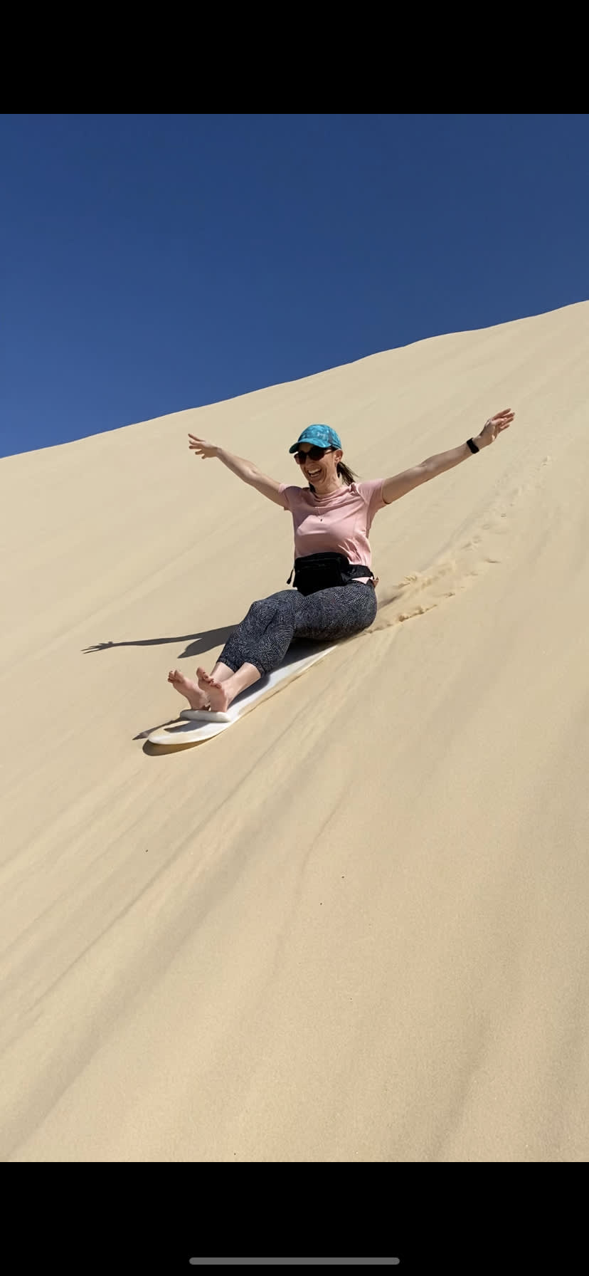 친절한 강사 중 한 명이 안전한 샌드보딩 방법을 가르쳐 드립니다. 사구에는 작은 언덕, 중간 언덕, 큰 언덕이 있어 자신감 수준에 따라 선택할 수 있습니다.
