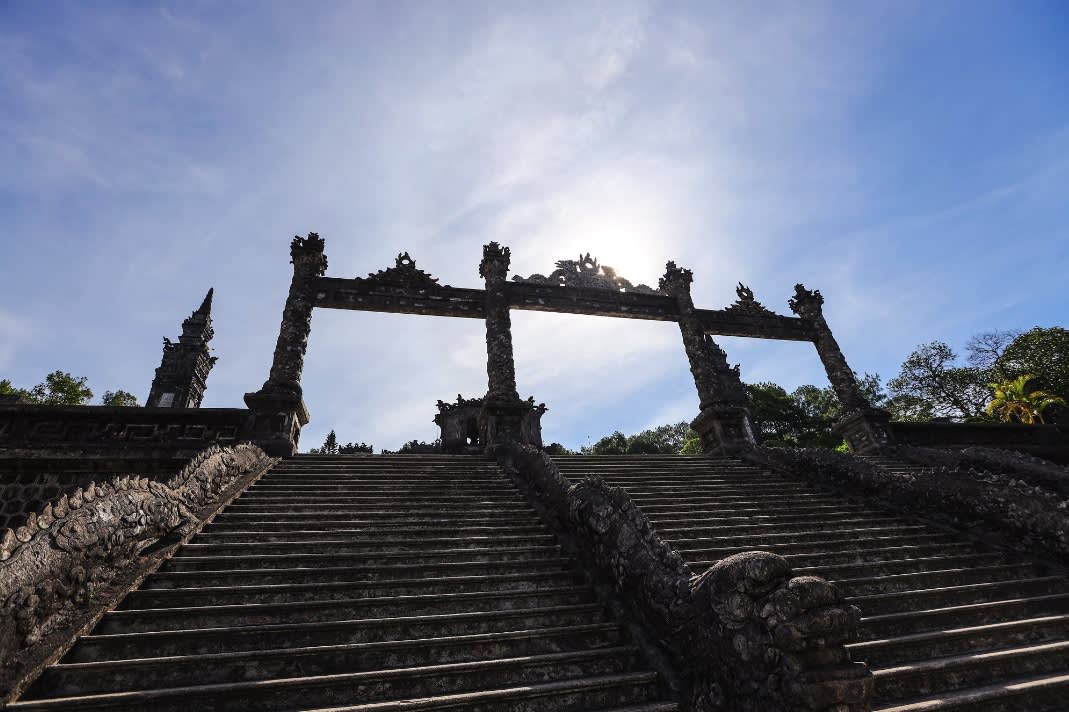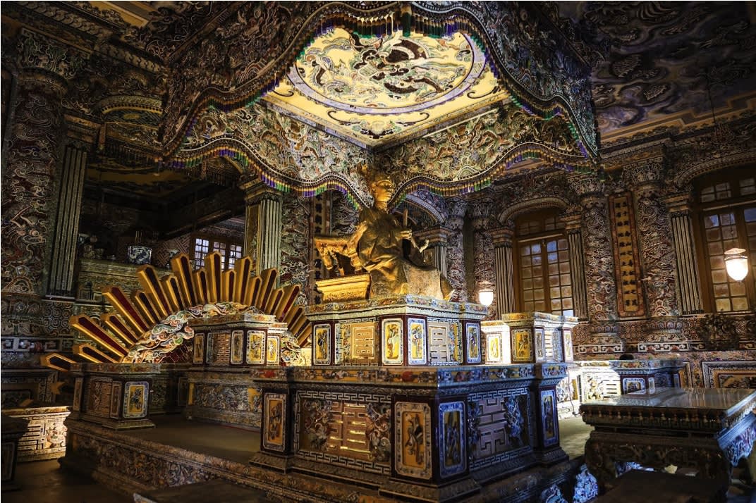 * 카이딘 왕릉에서 베트남 전통 건축 양식과 유럽 건축 양식이 조화롭게 어우러진 아름다움을 만끽해 보세요.