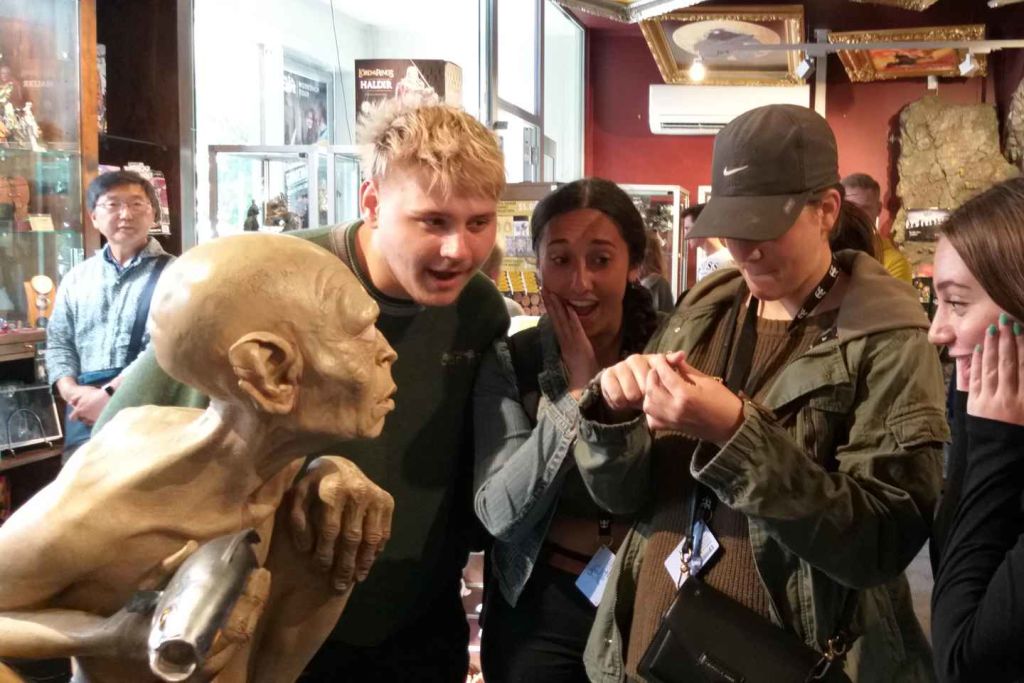 웨타 동굴을 방문하고 반지의 제왕 기념품을 구입하세요.