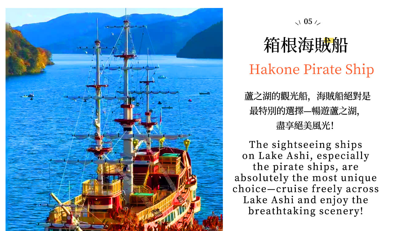 * 아시노코 해적선 유람: 호수에서 유람하며 후지산과 수상 도리이를 멀리서 바라보며 그림 같은 풍경을 감상하세요.