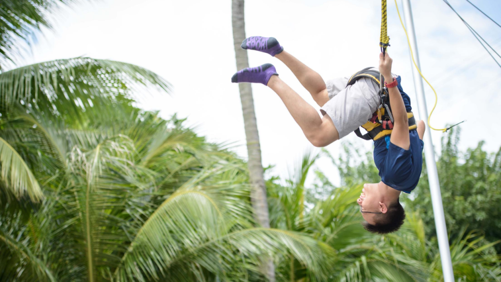 대표적인 어트랙션인 '메가짚(MegaZip) 은 동남아시아에서 가장 가파른 짚라인이며, 높이 75미터 지점에서 출발해 인비아 힐에서 아름다운 실로소 해변까지 450미터를 활강합니다. 또한, 세 가지 난이도 중 선택할 수 있는 트리탑 로프 코스 '메가클라임(MegaClimb)'이나 번지 점프 보조 트램펄린 '메가바운스(MegaBounce)'와 같은 다른 액티비티도 즐겨 보세요.