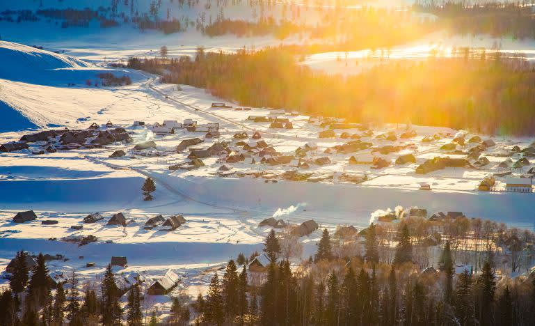 * 카나스(喀纳斯) + 허무(禾木)의 생활: ✔️설원 말등 탐험 ✔️모닥불 춤 ✔️상고대 눈 버섯 ✔️기포 푸른 얼음 호수 ✔️일몰 별