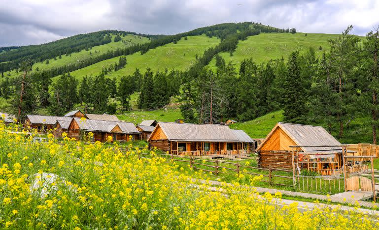 * 허무(禾木) 유원 산악 주민 & 오리지널 투바족 스타일의 통나무집