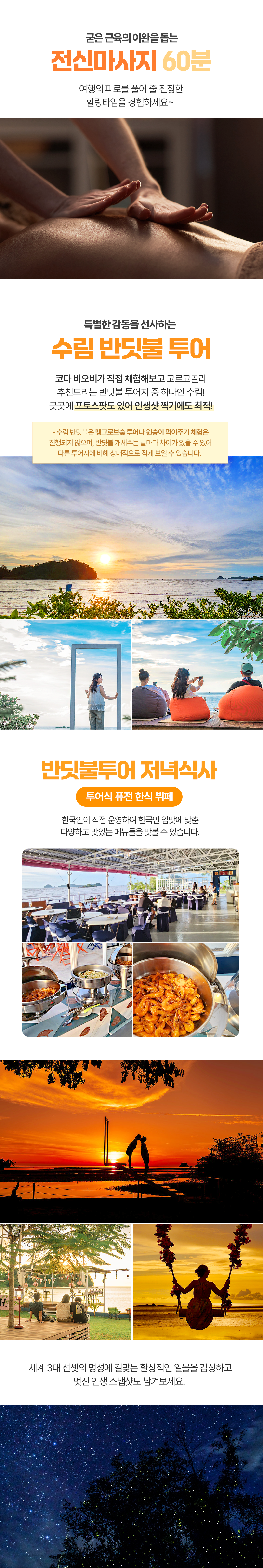 또 다른 매력을 느낄 수 있는 선셋 투어로 자연이 주는 감동을 느껴보세요!