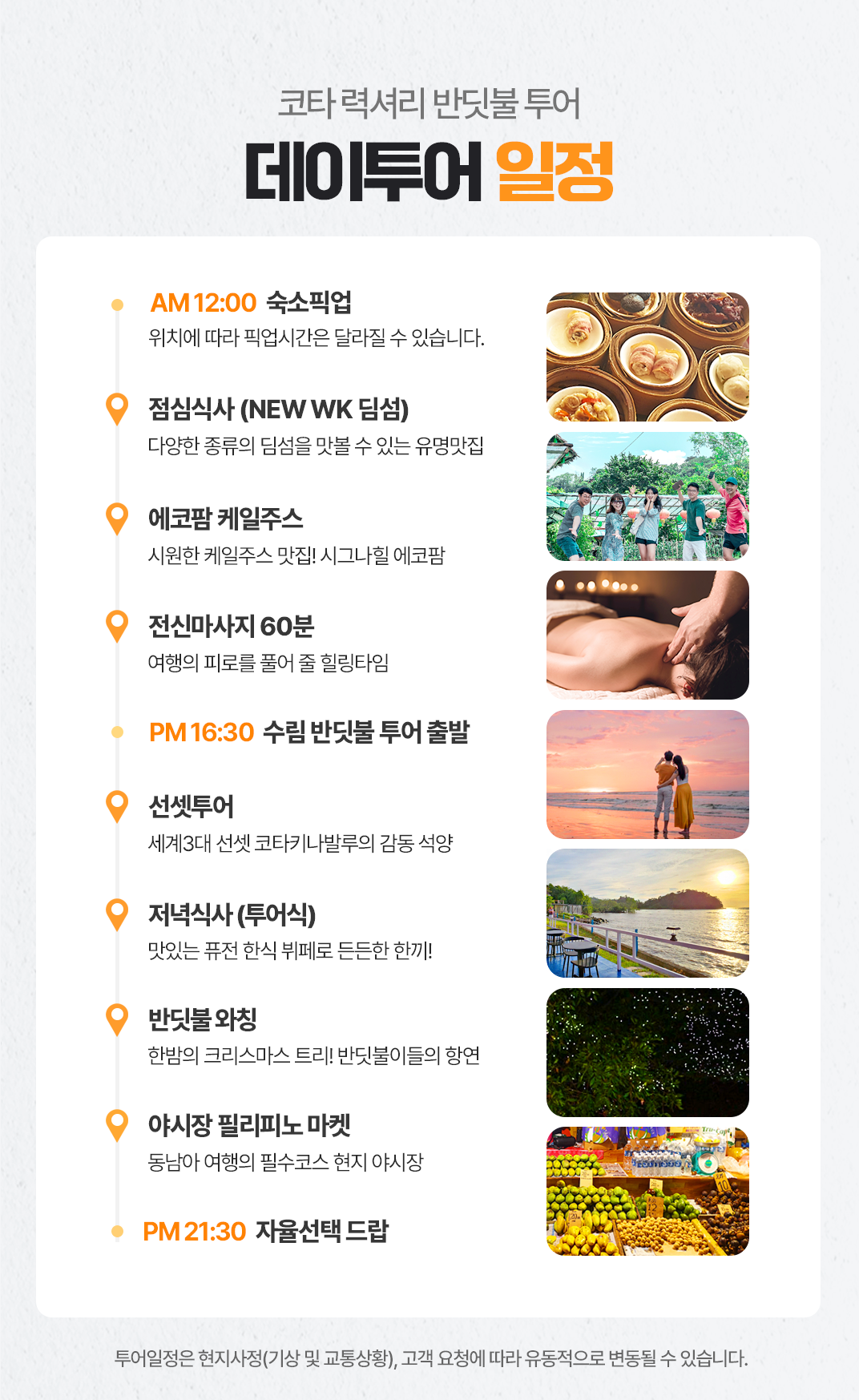 1:1 단독 가이드, 인생 스냅사진 제공, 점심 식사는 무제한 딤섬 제공, 전신 마사지, 맹그로브 숲 투어, 선셋 투어, 반딧불 투어!