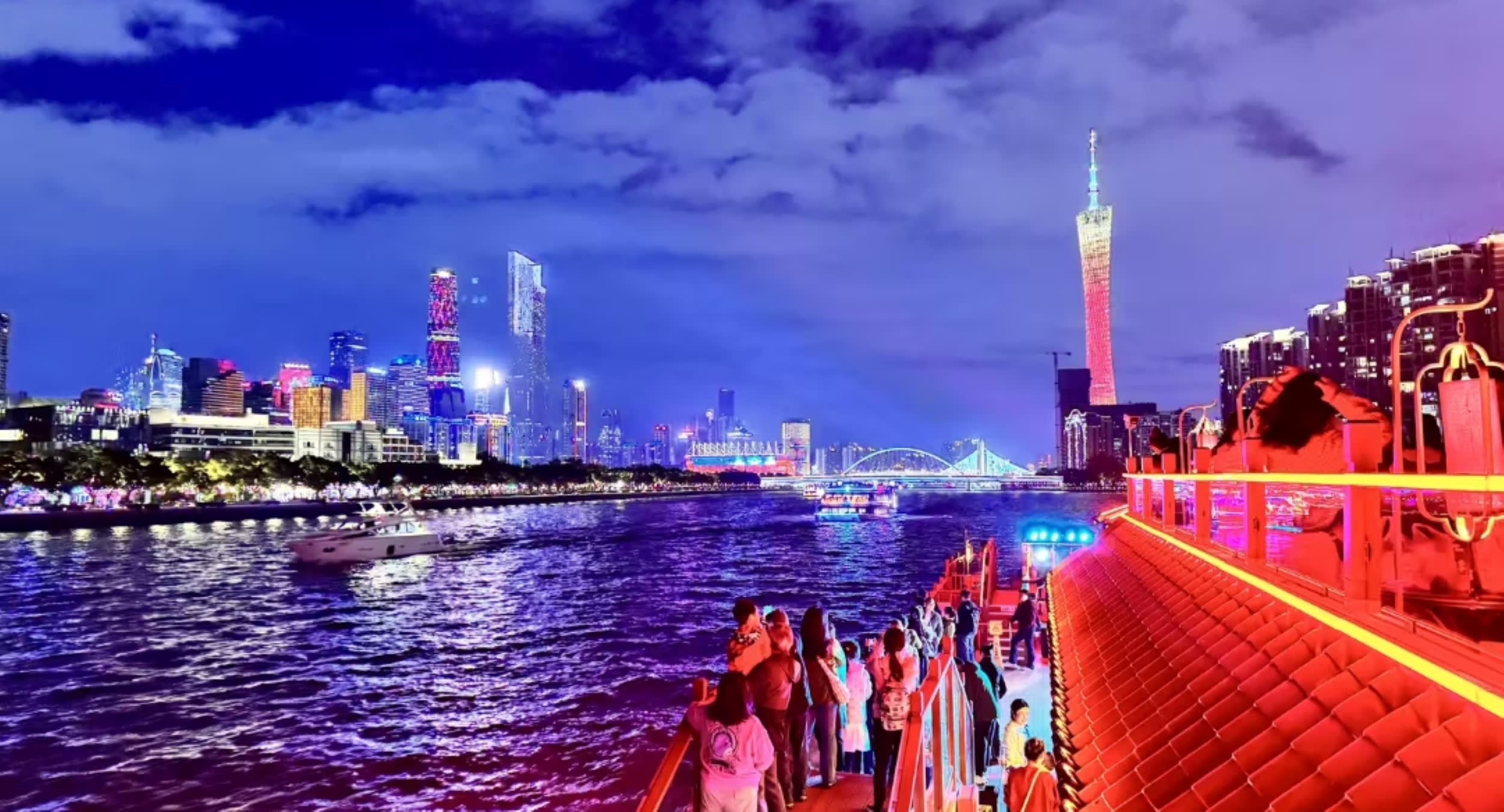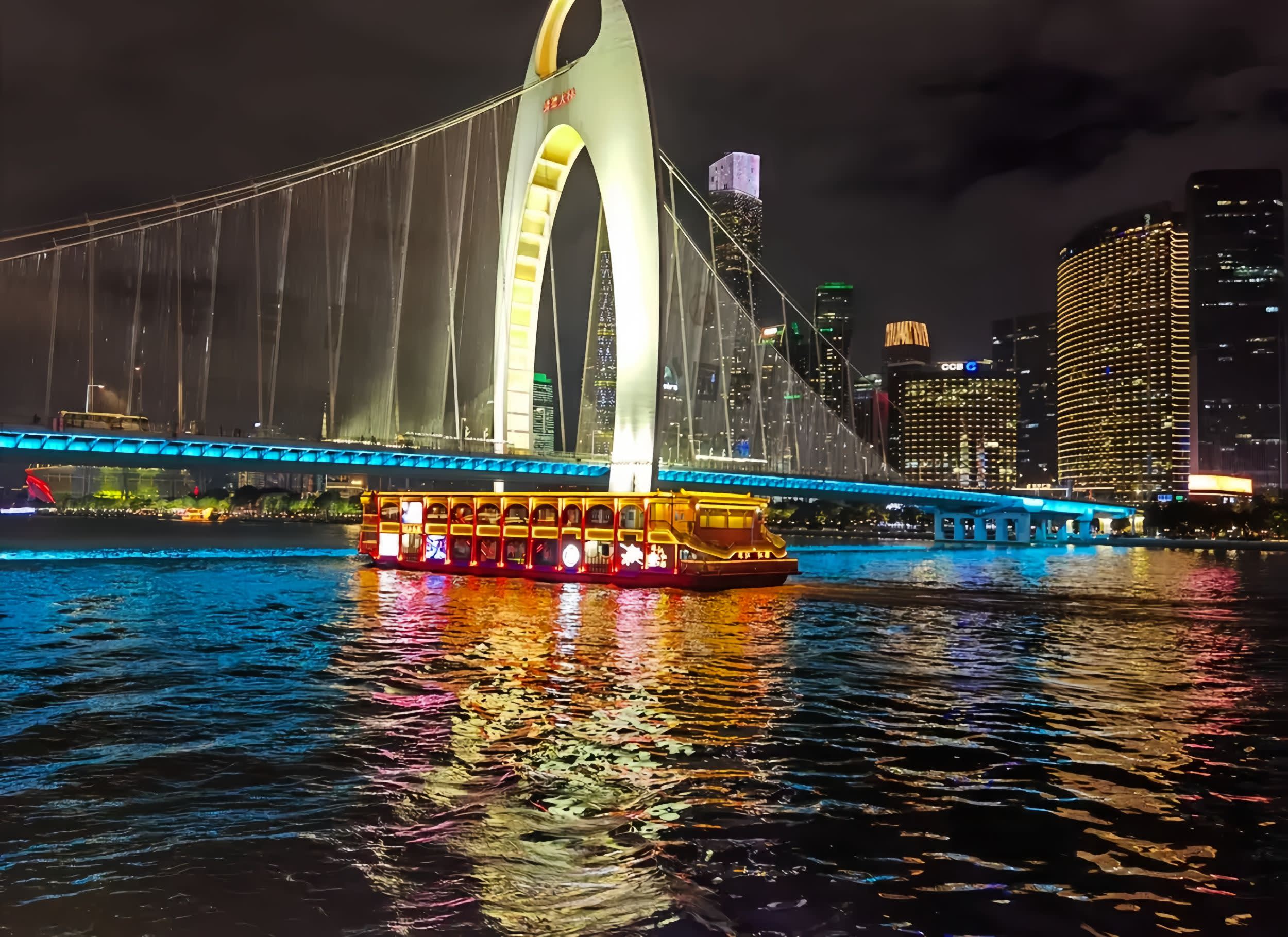 * 광저우 타워 등 여러 랜드마크를 연결하여 주장 양안의 아름다운 경치를 감상할 수 있습니다.
