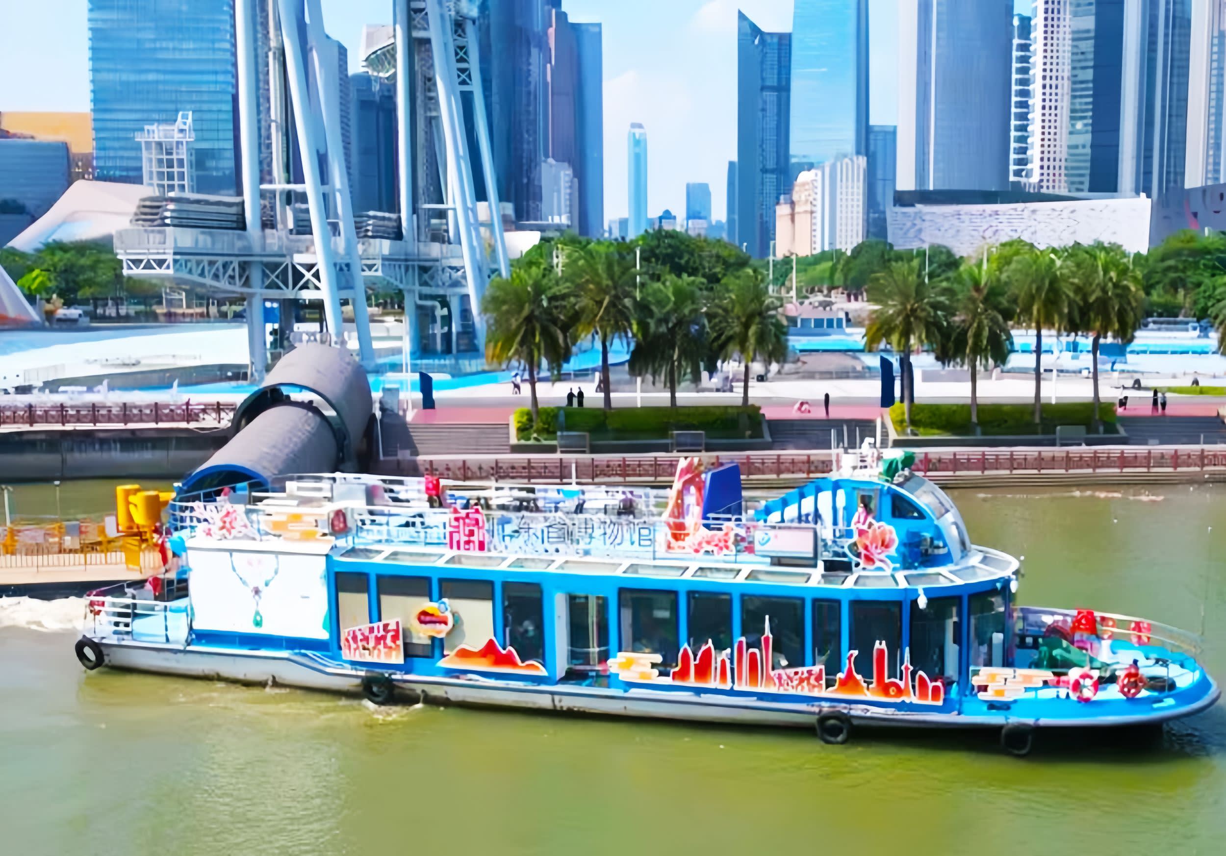 * 유람선 외관 디자인은 매우 독특한 영남 문화를 가지고 있으며, 푸른색 주조에 성 박물관의 건축 윤곽과 광저우 랜드마크가 융합되어 있습니다.