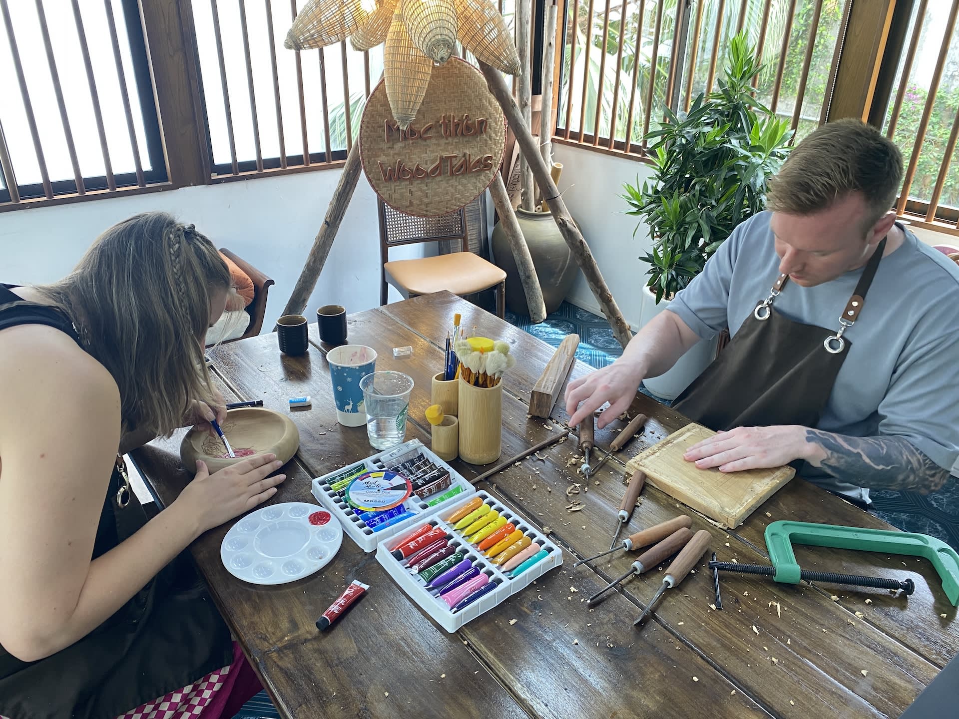 하노이의 번잡함에서 벗어나 마음챙김 창작 활동을 위한 숨겨진 휴식처, 목톤 스튜디오(Mộc Thôn Studio)에서 평화를 찾아보세요. 먼저 베트남 공예에 대한 짧은 전시를 관람한 후 물고기나 고양이와 같은 재미있는 모양부터 그릇이나 접시와 같은 실용적인 품목까지 원하는 나무 조각을 선택하세요. 부드러운 안내에 따라 전통 도구를 사용하여 자신의 속도에 맞춰 디자인을 스케치하고, 조각하고, 모양을 만드는 방법을 배우세요. 색을 더하고, 밀랍으로 마감하고, 작업하면서 차, 부드러운 음악, 조용한 명상을 즐겨보세요. 손으로 쓴 쪽지가 담긴 수제 천 가방에 작품을 포장하여 나무 기념품뿐만 아니라 예술, 전통, 평온의 의미 있는 경험을 집으로 가져가세요.