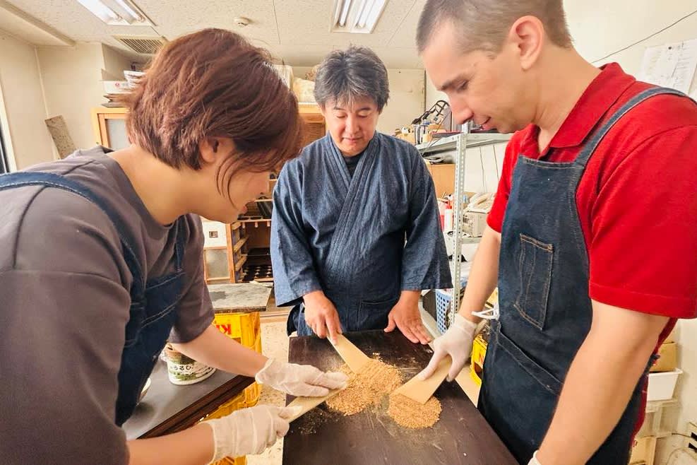다카야마 나오야의 지도를 받으며 전통 공예인 히로시마 불단의 기원과 기술을 배우고 옻칠 회화 체험을 해보세요!