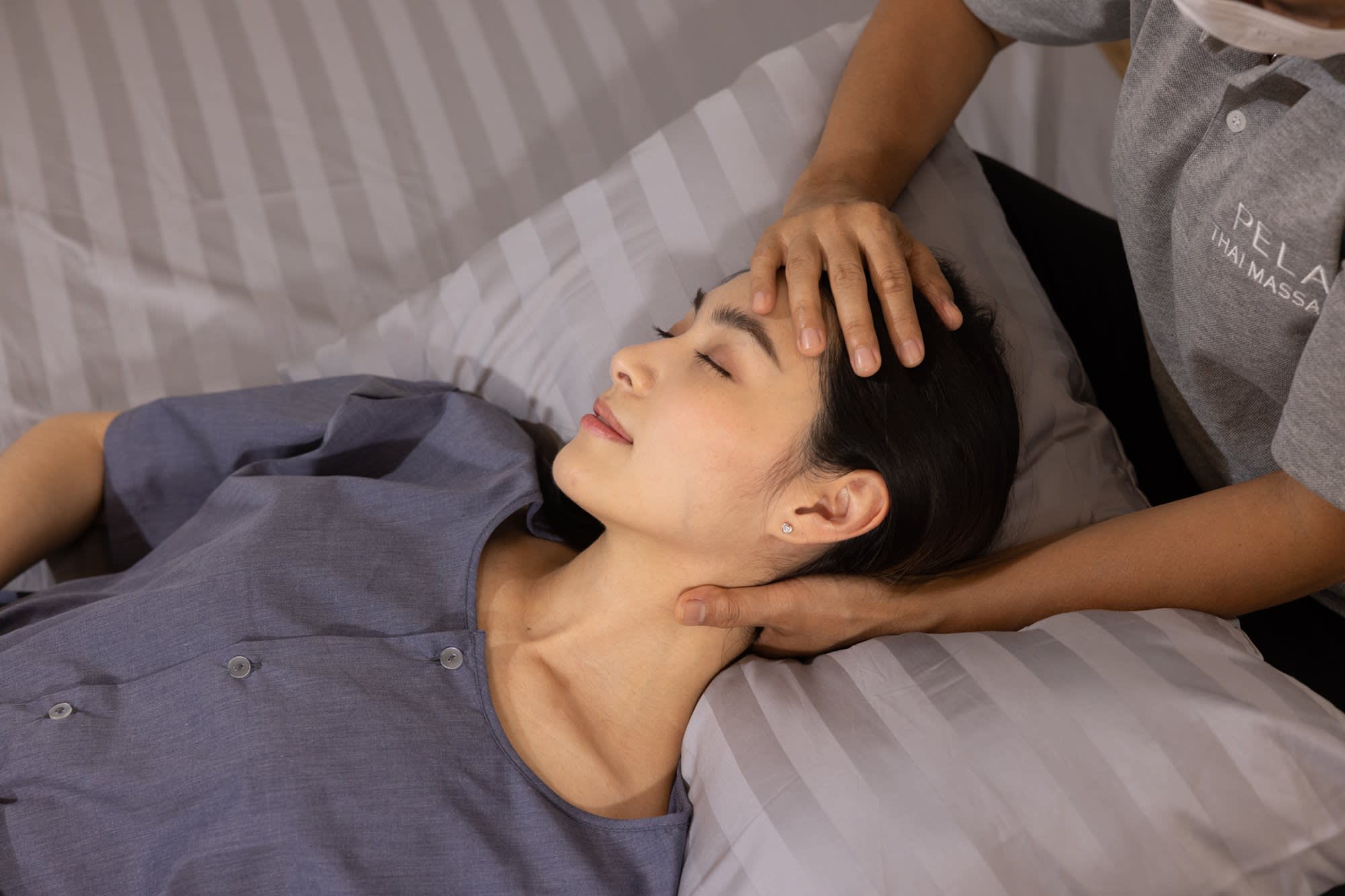 아로마테라피 마사지와 태국 허브 압축을 이용한 펠라 시그니처 마사지를 받으며 피로를 풀어보세요.