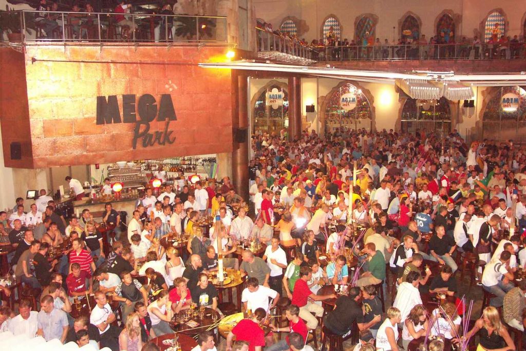 오후 9시쯤 발레르만에 도착하면 오전 2시 30분까지 자유 시간이 주어지며, 플라야 데 팔마 파티 버스는 아레날의 발레르만에서 가장 큰 비어 가든인 메가파크 근처에 하차합니다. 메가파크 단지에는 3500m의 야외 공간, 6개의 바, 쇼 무대, 3개의 대형 스크린, 대형 수영장이 있습니다. 위르겐 드루스, 폴 얀케, 미카엘라 셰퍼, 버디, 노먼 랑겐 등 유명 DJ와 히트곡 가수들이 메가파크에서 공연을 펼칩니다.