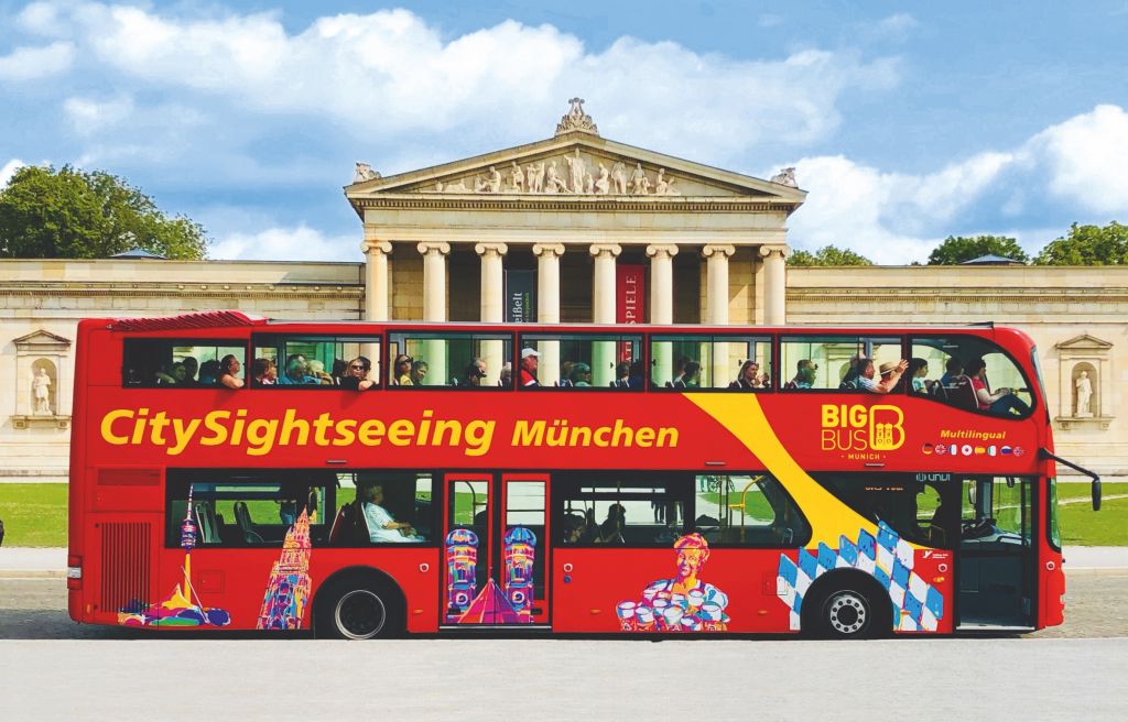 오픈탑 2층 버스에서 편리하게 뮌헨 여행을 즐겨보세요.