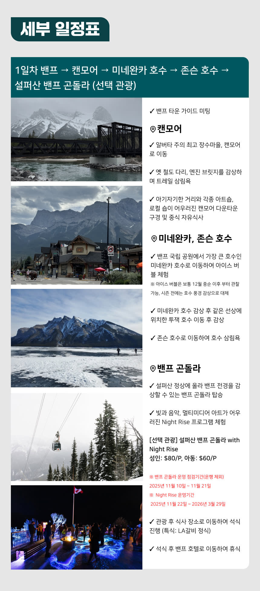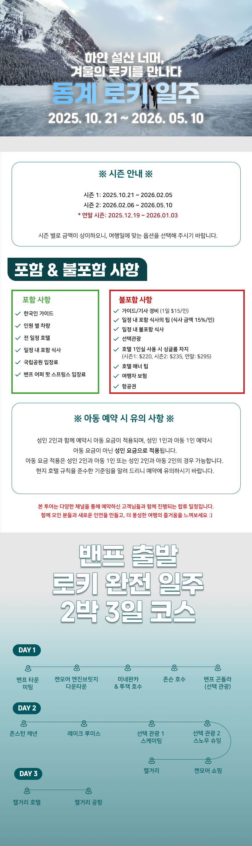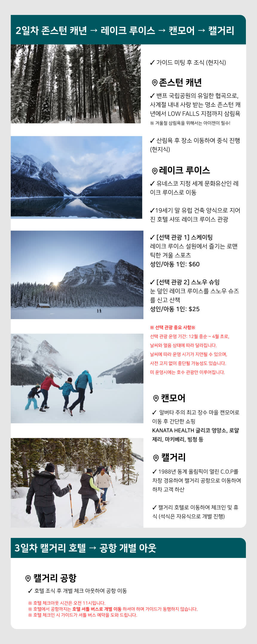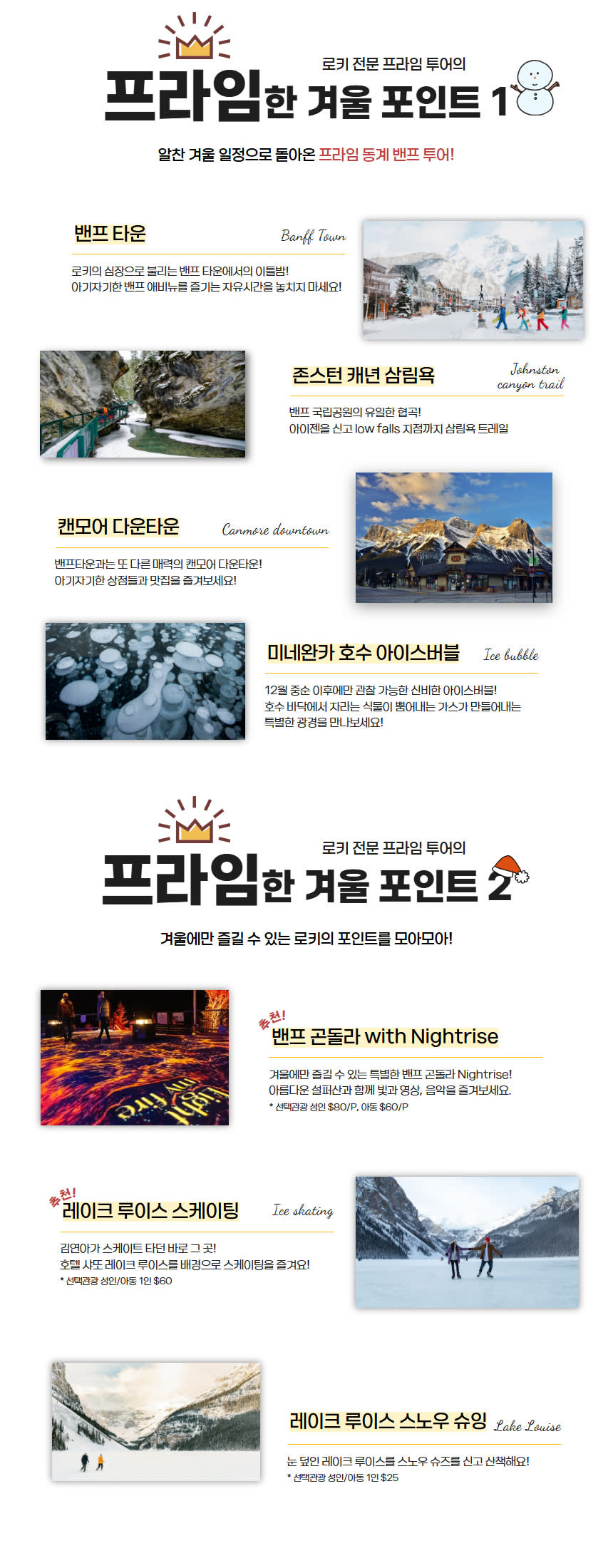 겨울철 밴프 여행의 매력을 느끼는 2박 3일!