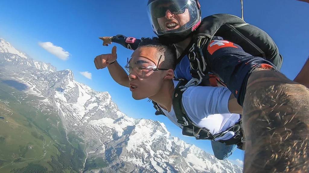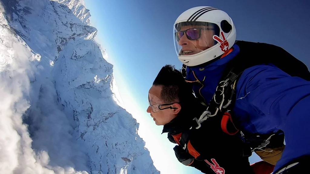 버킷리스트에 세 가지 일을 한 번에 체크해 보세요! 먼저 헬리콥터에 탑승해 스위스 알프스의 경치를 8분 동안 즐기세요. 헬리콥터가 고도를 오르면서 계곡과 아이거, 묀히, 융프라우를 포함한 지역의 아름다운 산봉우리들을 감상하실 수 있습니다. 비행 후에는 경험 많은 강사와 함께하는 45초간의 자유낙하의 스릴을 만끽해 보세요. 시속 200km(120mph)로 떨어지는 짜릿한 경험을 통해 전에 없던 아드레날린이 솟구칠 것입니다. 마지막으로 낙하산을 펼치고 5분 동안 평온하고 아름다운 경치를 감상하며 이 일생일대의 모험을 마무리해 보세요.