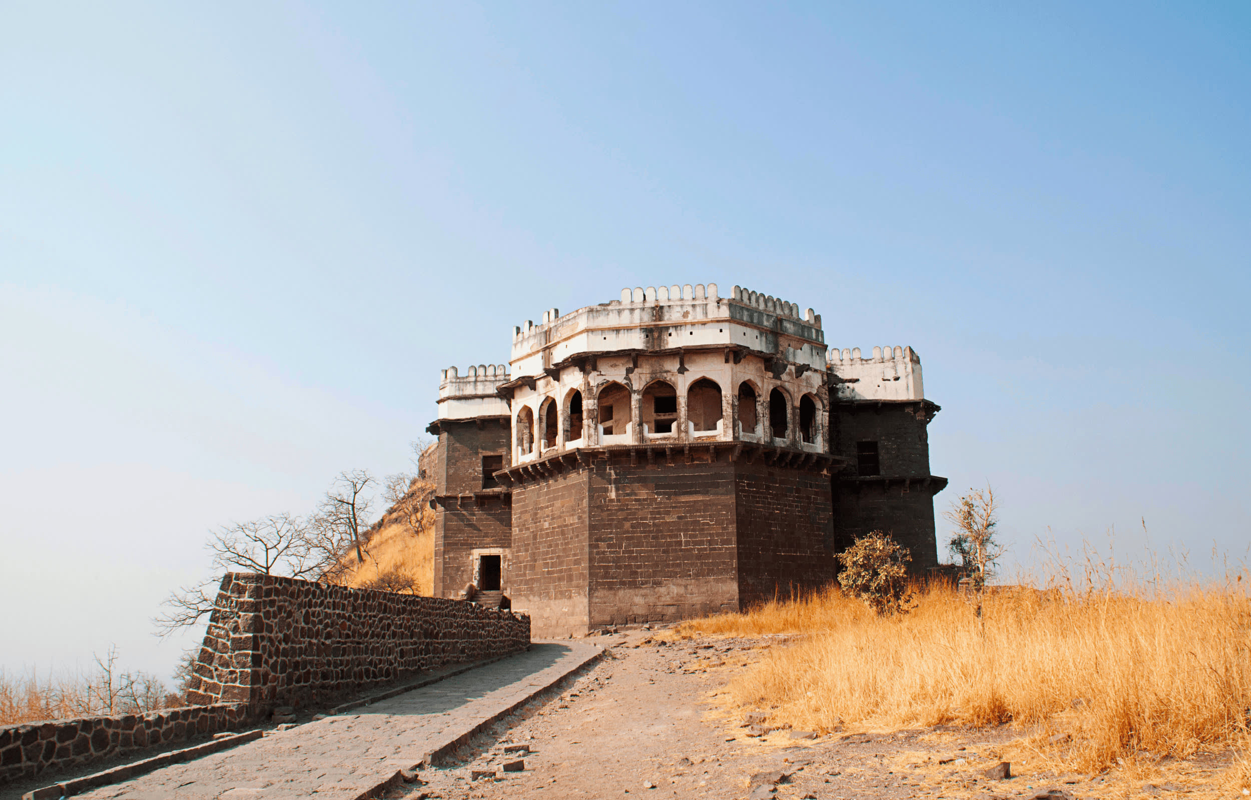 지그재그형 돌길, 고대 성벽, 망루를 지나 정상에 오르면 데칸 고원의 탁 트인 전망이 여러분을 기다립니다. 요새에는 또한 지하 통로, 곡물 창고, 저수지가 있어 고대 인도 계획의 훌륭함을 보여줍니다.