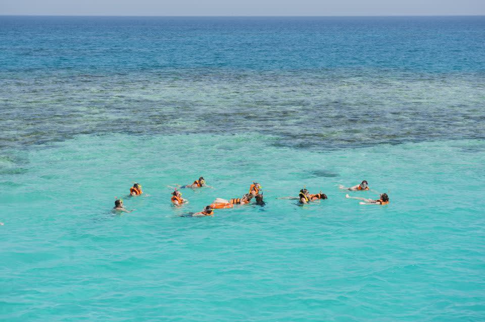 호텔에서 픽업 후 에어컨이 완비된 차량을 타고 요트 마리나로 이동하세요. 보트에 탑승하여 편안한 시간을 보내세요. 붉은 바다의 아름다운 경치를 감상하고 첫 번째 스노클링 장소에 정차합니다. 수백만 년 된 산호와 수백 마리의 물고기와 함께 스노클링을 즐길 수 있는 곳입니다.