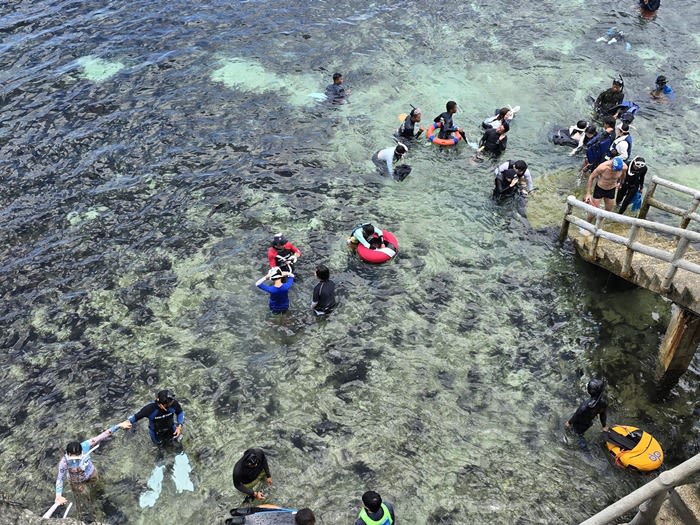 나팔링 바다로 들어가기전, 충분한 다이빙 연습이 가능합니다