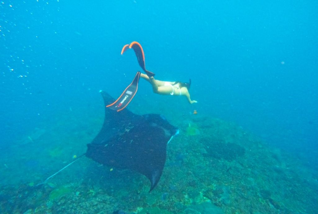 만타 베이는 거대한 만타 가오리와 함께 수영할 수 있는 특별한 스노클링 포인트입니다.