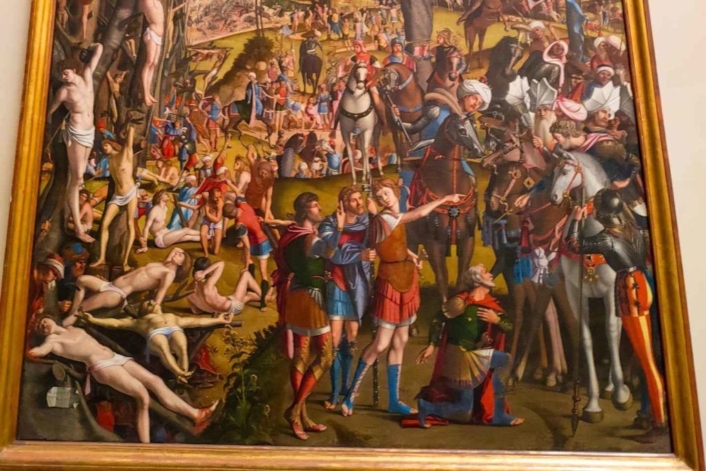 벨리니의 "산 조베의 제단화", 치마 다 콘엘리아노의 "라 마돈나 델라란치오", 카르파초의 "아라라트 산의 만 명의 순교자" 같은 서사적 회화를 감상한 후, 베로네세와 티ント레토의 대표작인 "레비 집에서의 잔치"와 "노예의 기적" 같은 유명 작품에 감탄하게 됩니다.