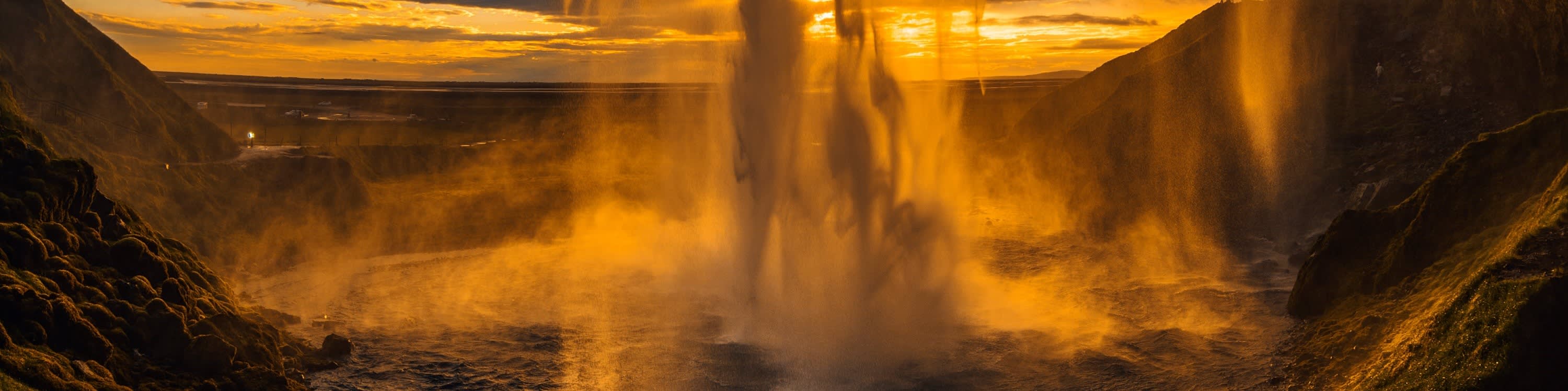 레이캬비크에서 시작하는 바이킹 트레일은 셀포스와 흐볼스볼루르로 이어지며, 저지대에서 빙하와 화산이 보이는 산악 지대로 바뀝니다. 아름다운 해안선에서 베스트만 제도(Westman Islands)의 매력을 느껴보세요. 셀랴란드스포스 폭포 뒤를 걸어보고 숨겨진 글류프라부이 폭포도 방문합니다. 다음은 웅장한 60m 높이의 스코가포스 폭포이며, 교회에서 탁 트인 전망을 감상할 수 있는 비크 이 미르달을 방문합니다. 레이니스퍄라의 검은 모래 해변을 탐험하고 강력한 대서양 파도를 목격한 후, 솔헤이마요쿨 빙하로 여정을 이어간 다음 레이캬비크로 돌아와 하루의 모험을 되돌아보며 마무리합니다.
