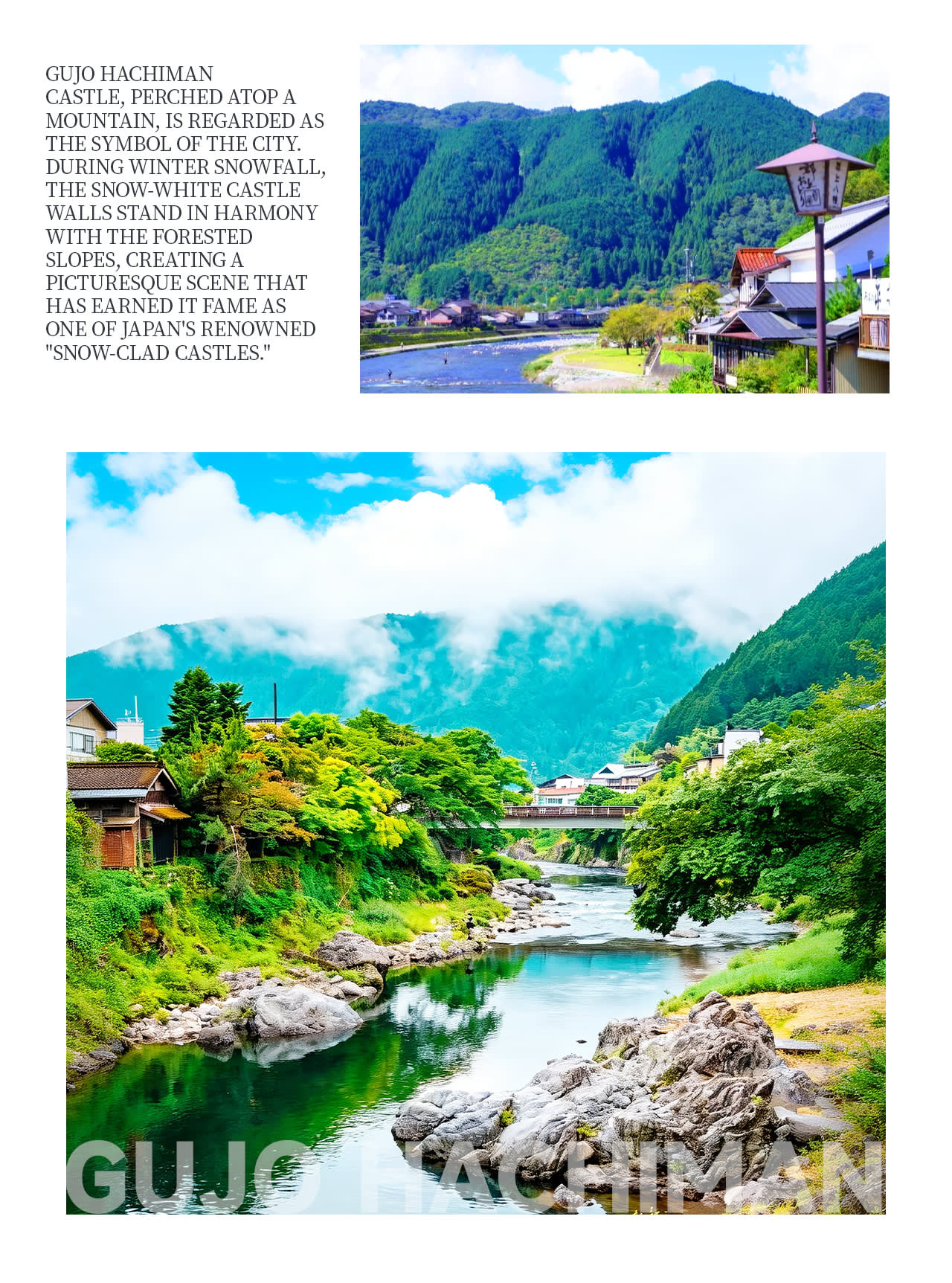 * 맑은 계곡과 돌판길이 있는 郡上八幡(구죠하치만) 수상 마을에서 일본 시골의 여유로운 삶을 느껴보세요.
