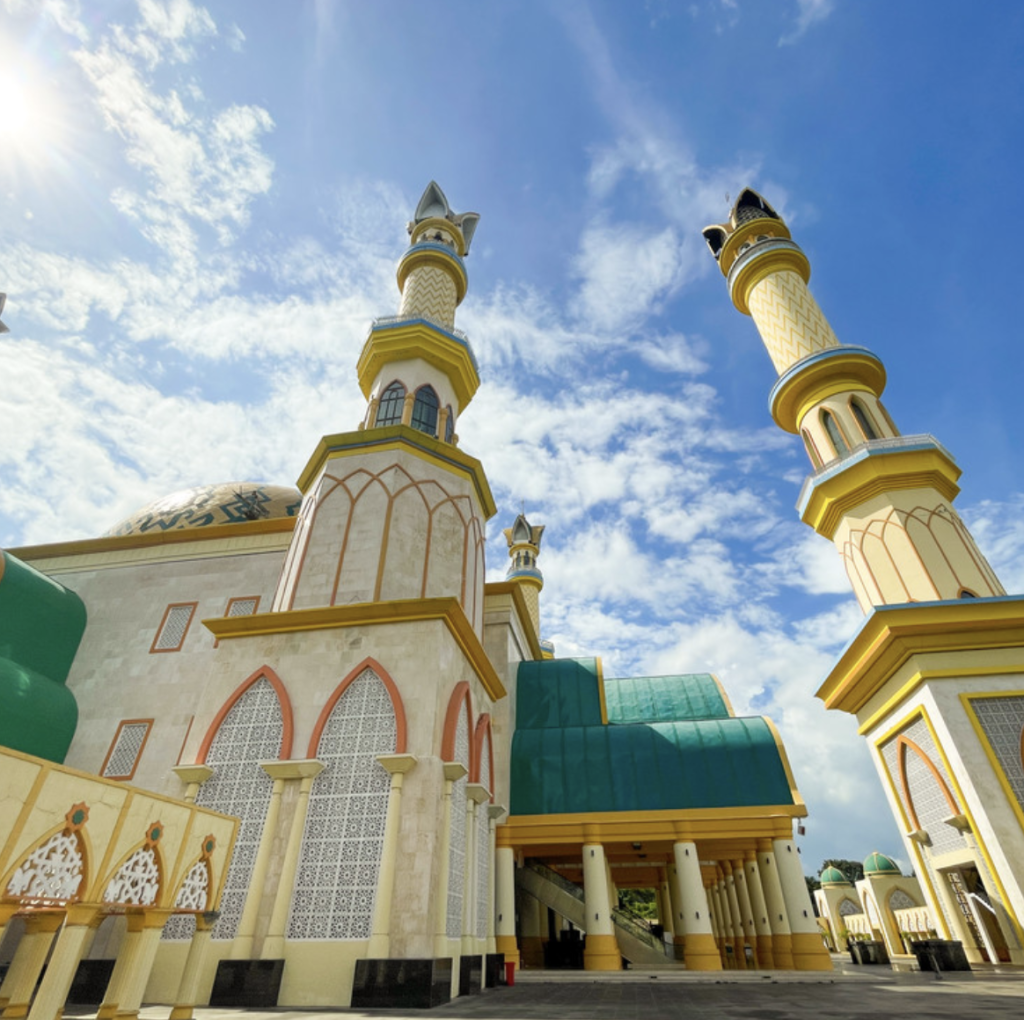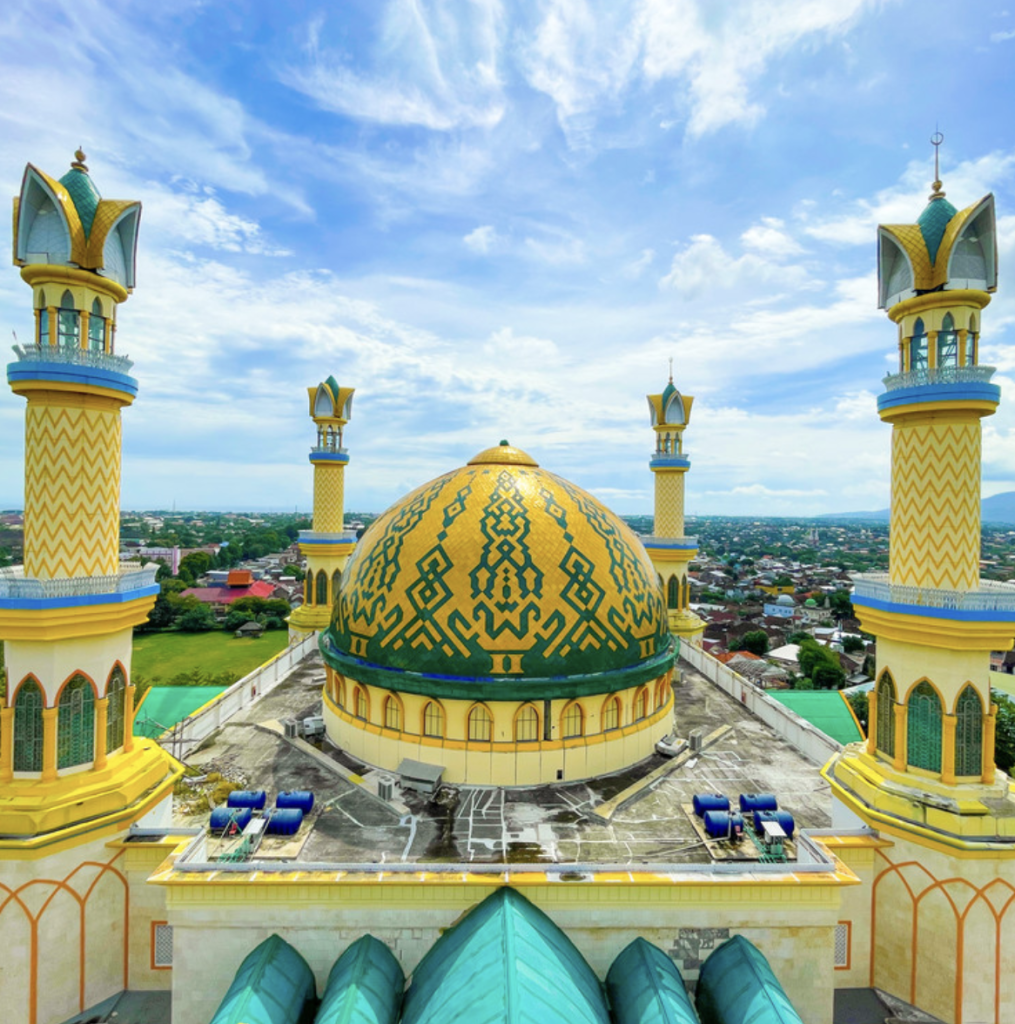 롬복 최대 이슬람 사원에 방문합니다. 이슬람 종교 의식에 따라 복장을 갖추고, 북을 두드립니다. 이후 가이드의 안내에 따라 건물 내부를 둘러보고 전망대에 오릅니다. 전망대는 약 10층 높이로 현재는 걸어서 올라갈 수 있습니다. 뚜벅뚜벅 걷다보면 어느새 전망대 중턱에 도착! 한 눈에 롬복 시내를 내려다보며 사진을 남겨보세요.