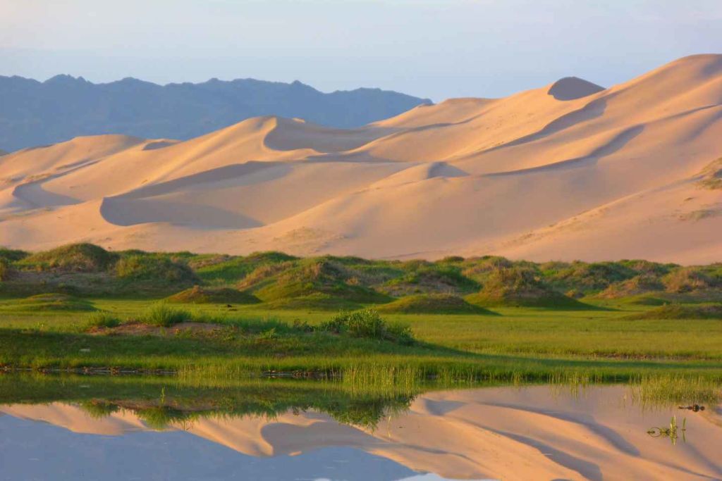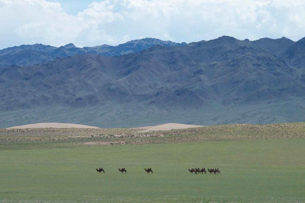 3 일차 아침 식사 후 아침 방문 콩고르 모래 언덕 낙타 타기 .