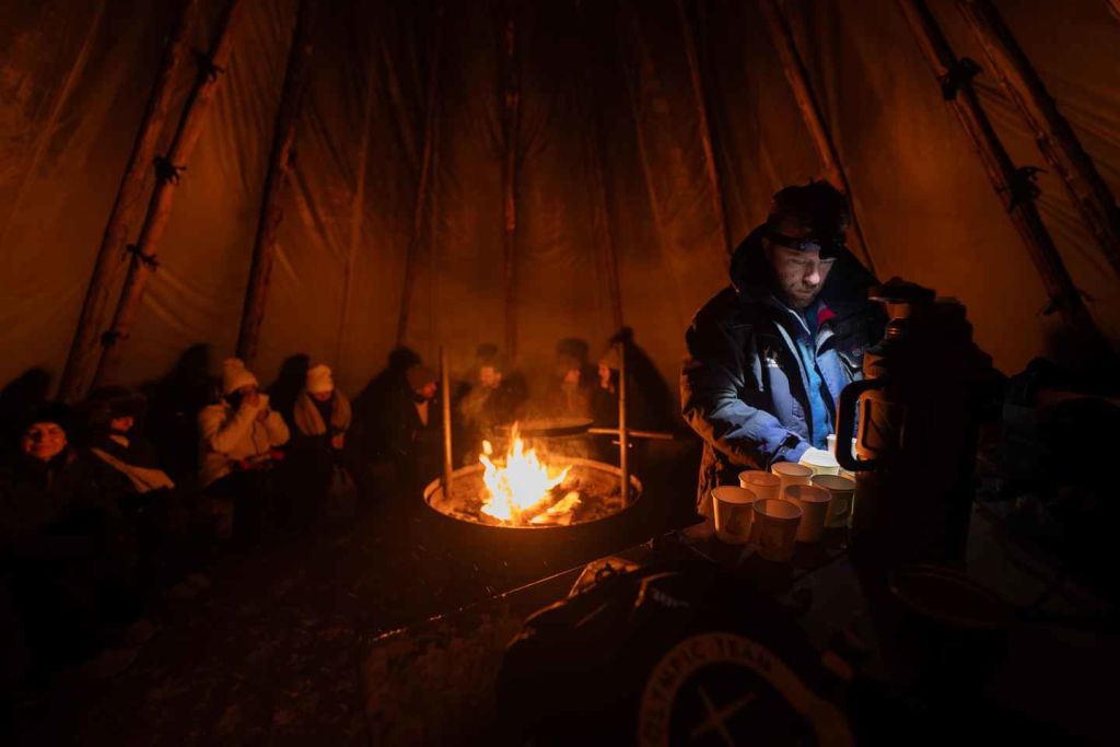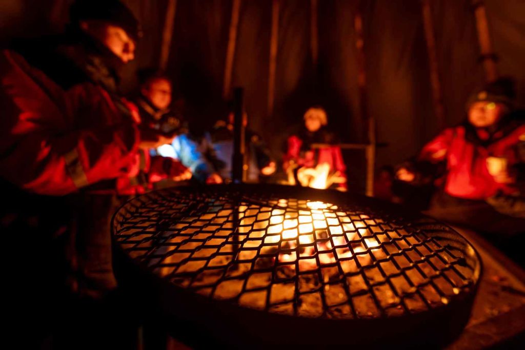 가이드가 블루베리 차와 함께 신선한 라피쉬 바비큐 요리를 준비해 주는 동안 휴식을 취하세요. 가이드가 들려주는 오로라의 비밀을 들어보세요. 밤하늘을 올려다보며 오로라의 모습을 기대해 보세요. 투어가 끝나면 숙소로 돌아옵니다.