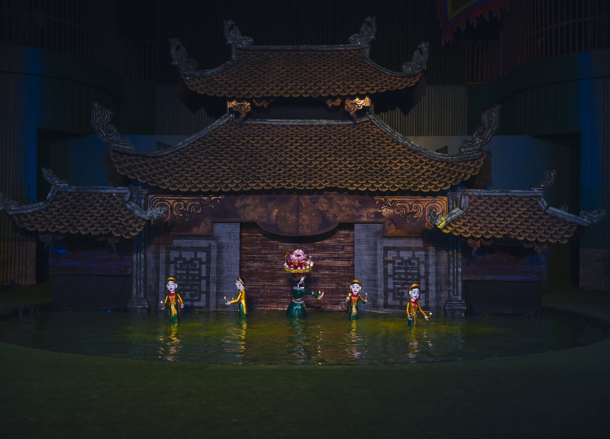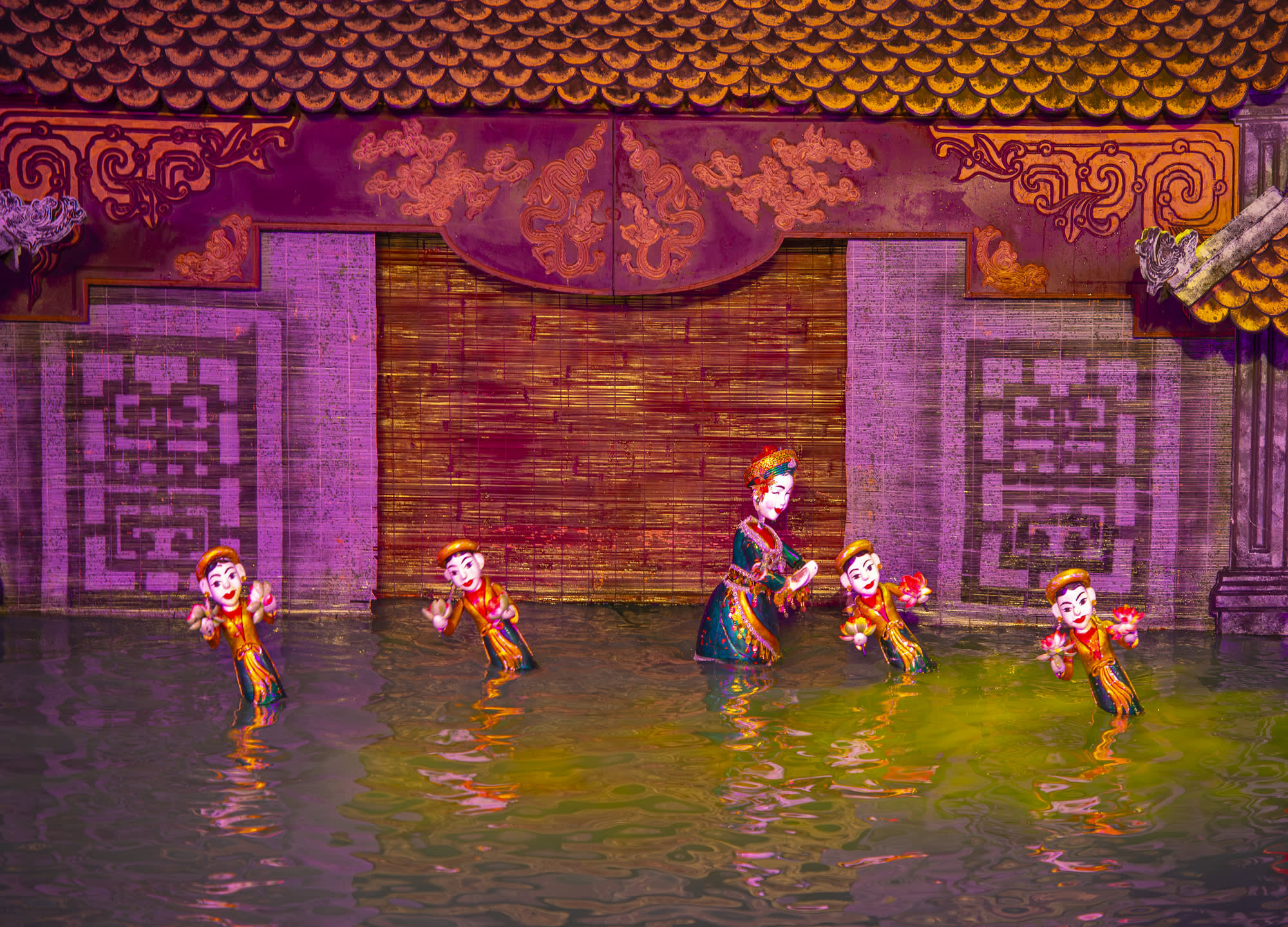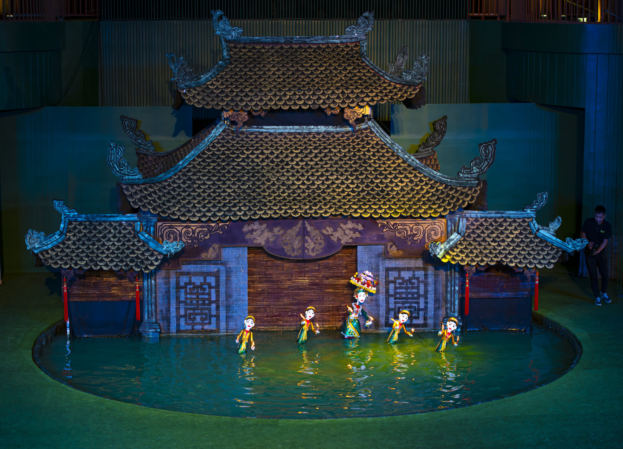 무대의 양 옆에서는 물 위에서 펼처지는 아름다움 춤을 감상하실 수 있습니다.