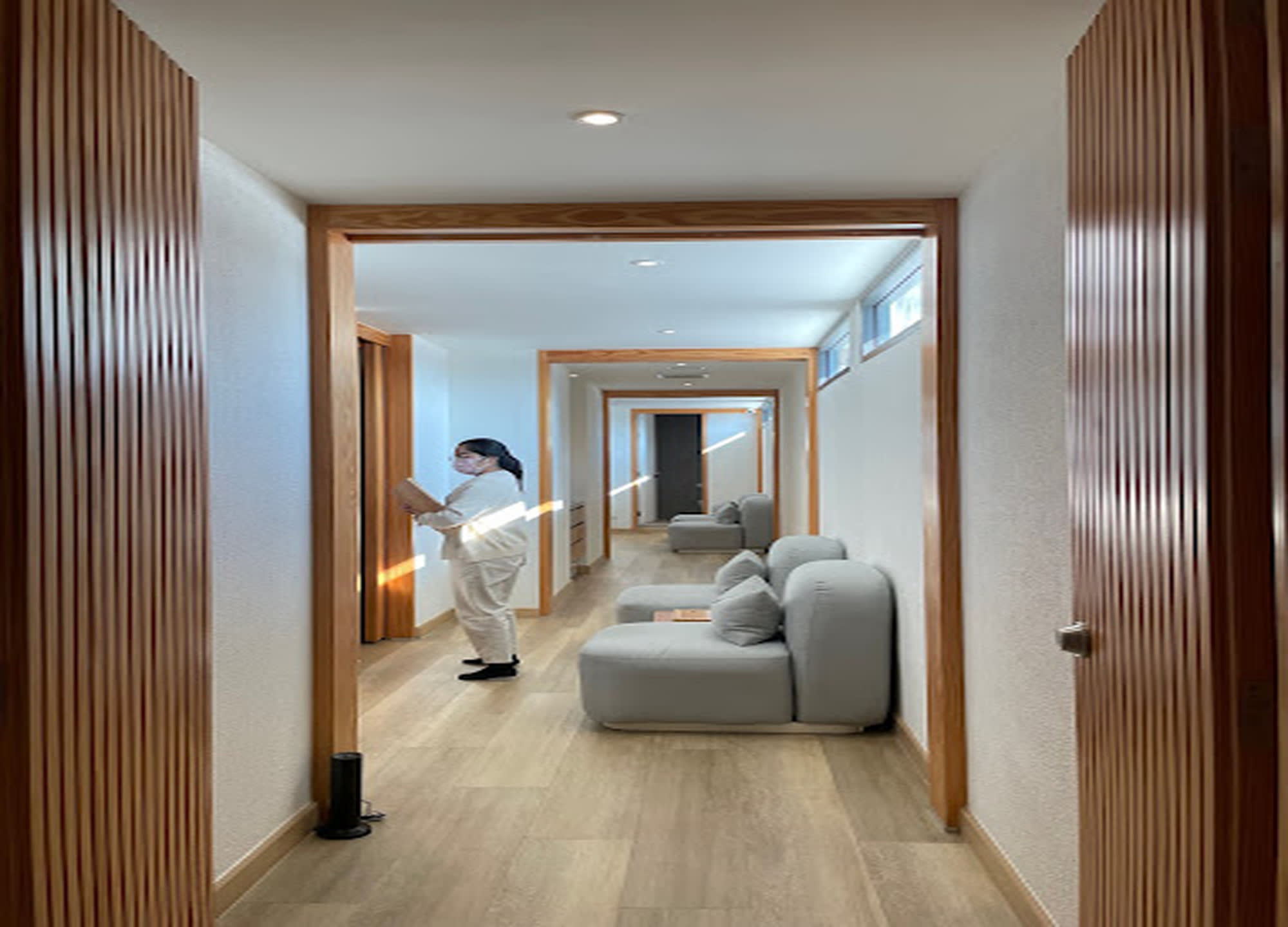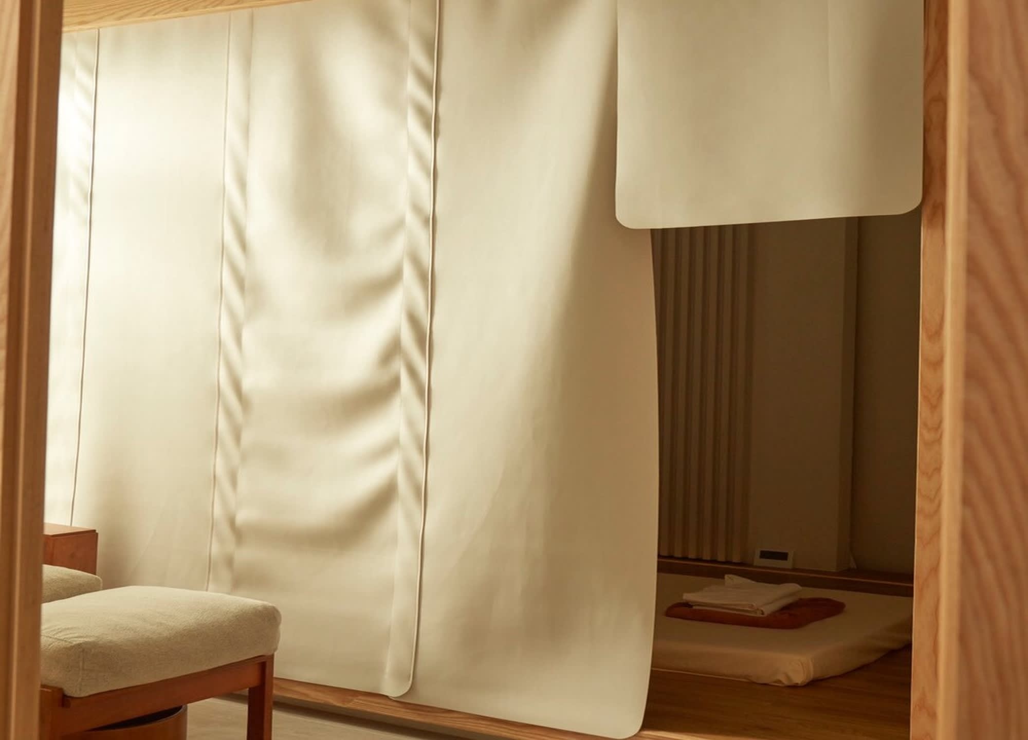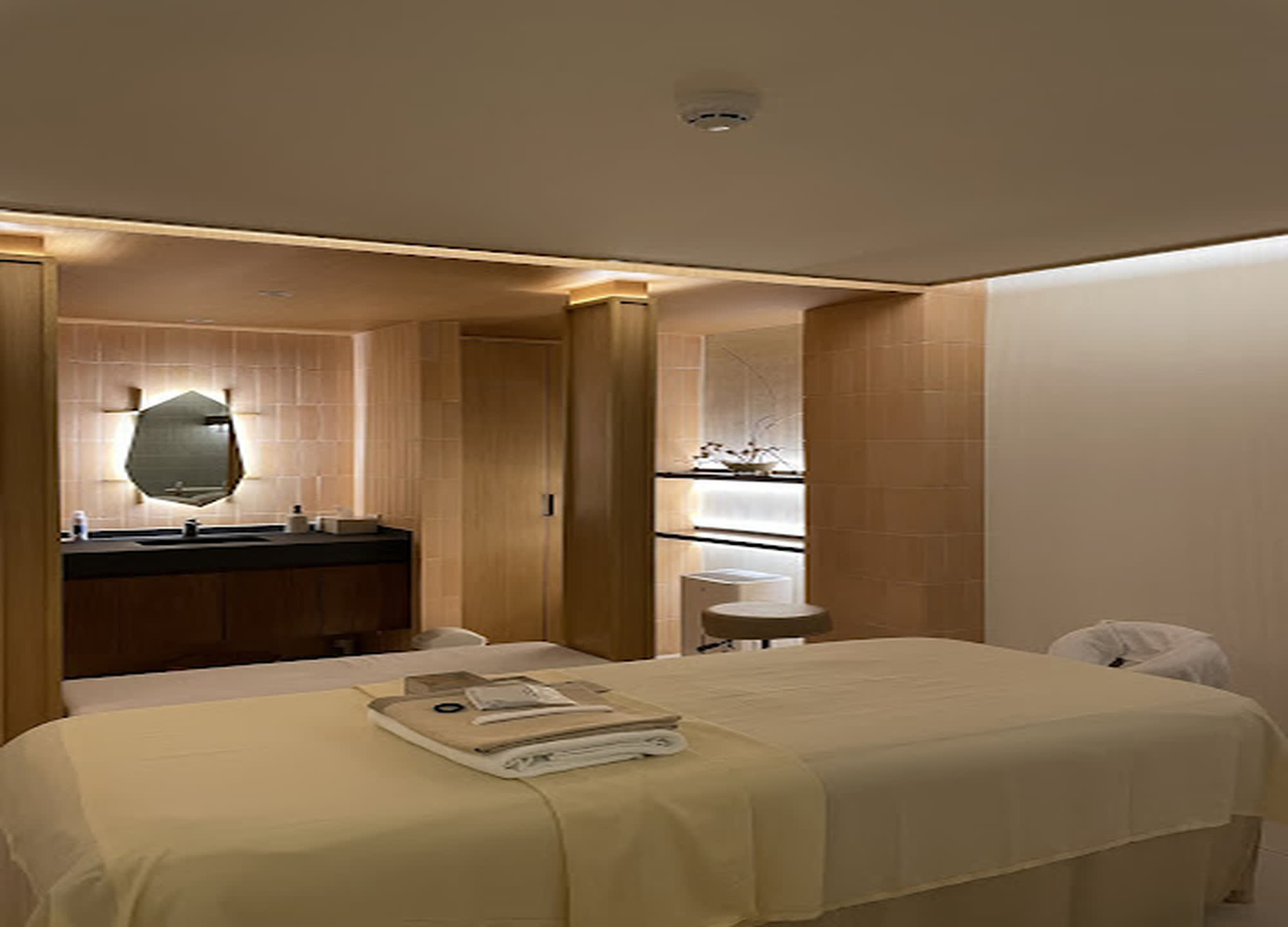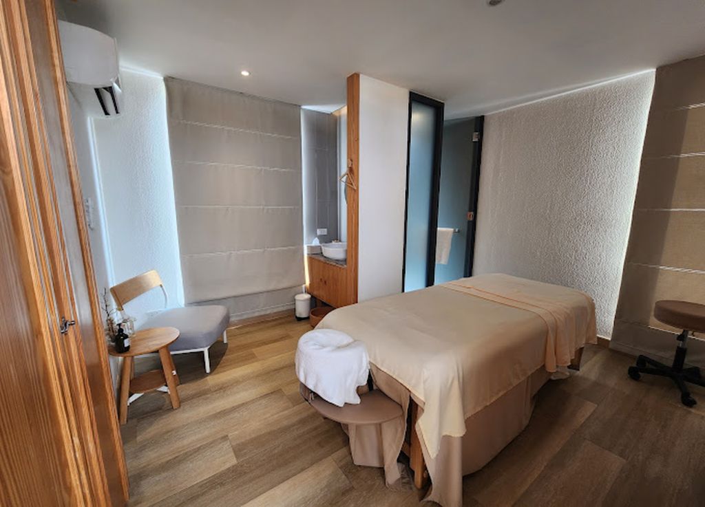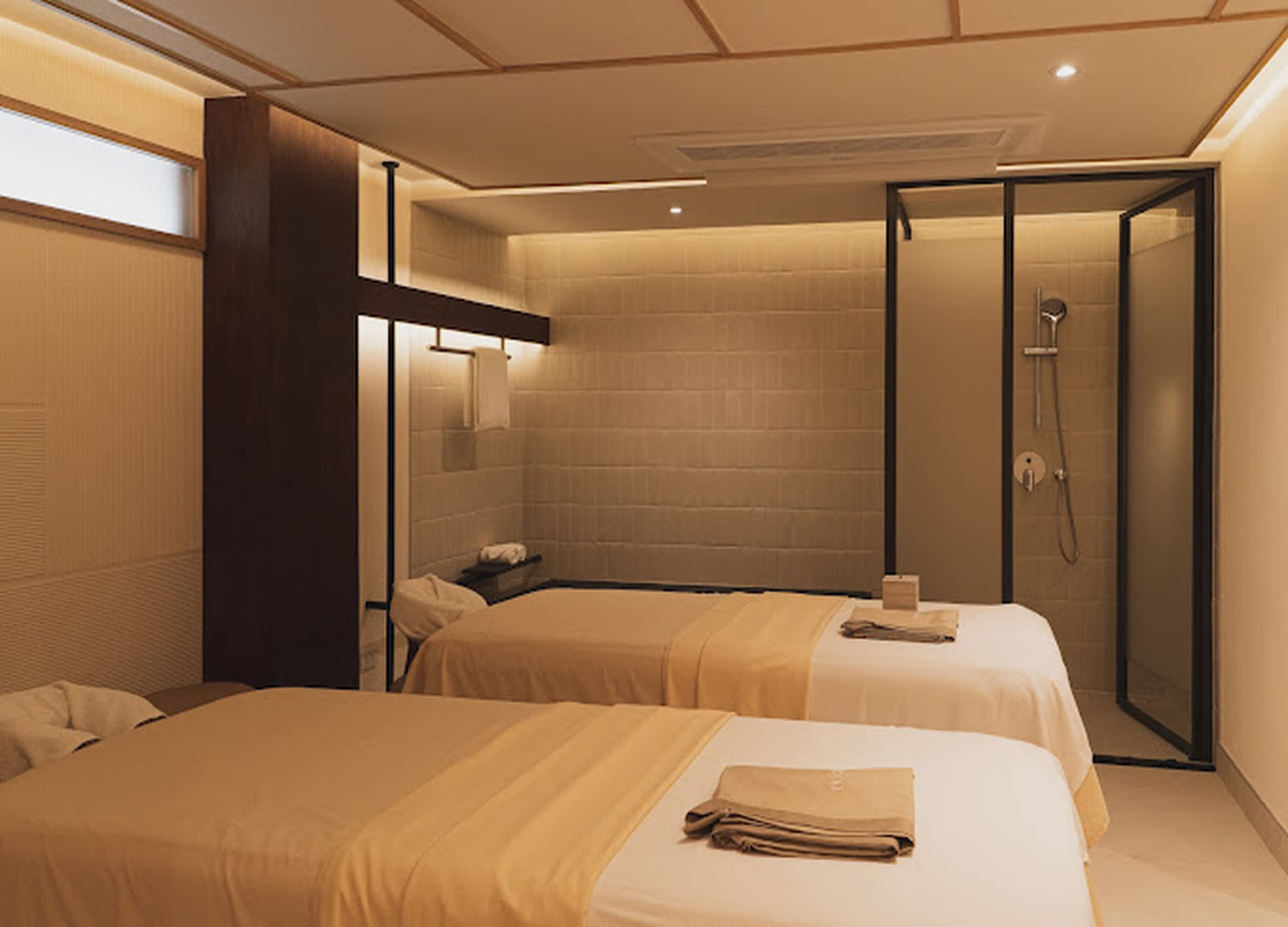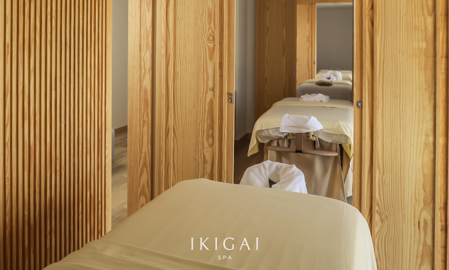 밝은 색상의 목재 사용하여 따뜻함과 편안함을 강조한 풀서비스 스파 이키가이 스파 (Ikigai Spa)에서 느긋한 시간을 즐겨보세요.