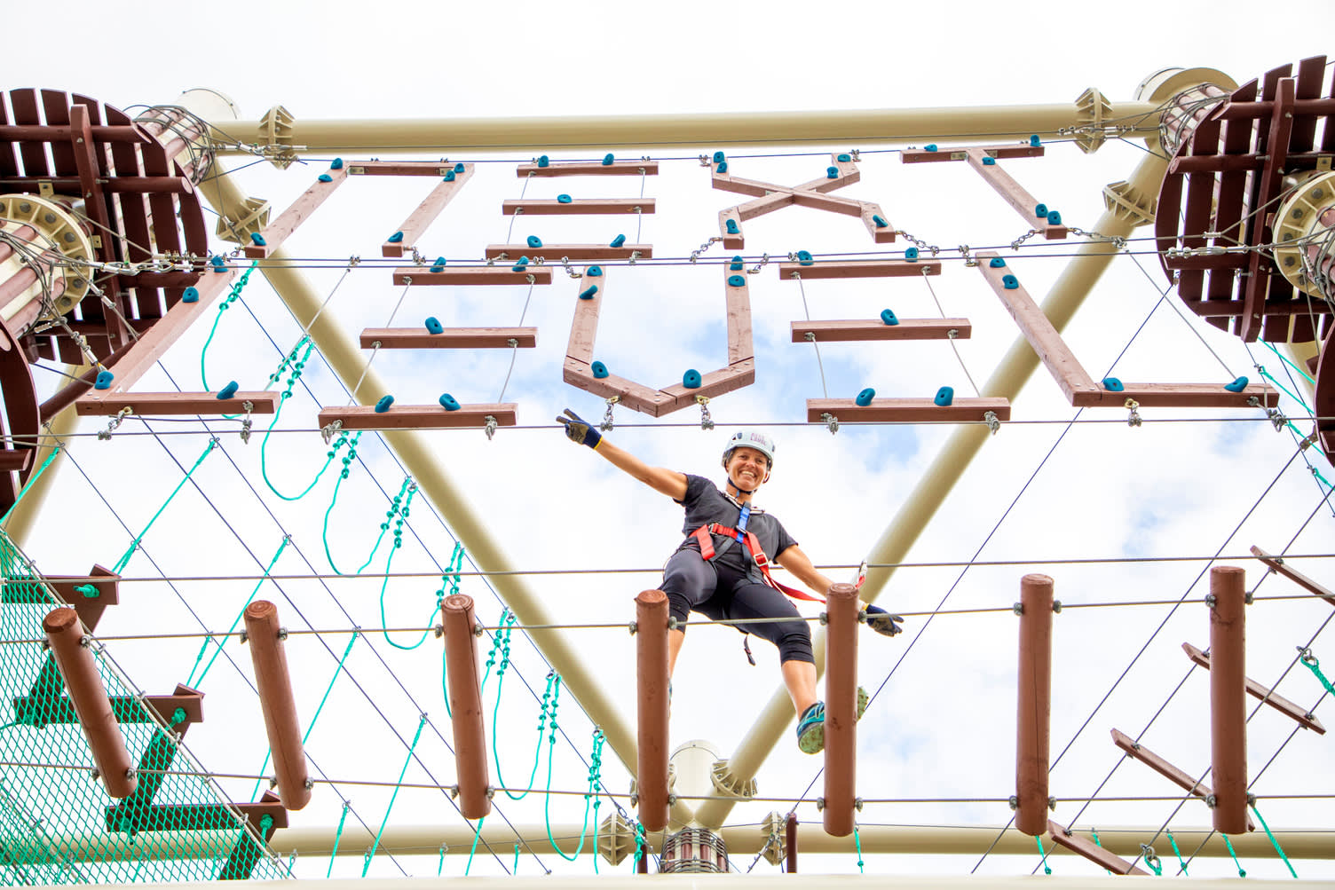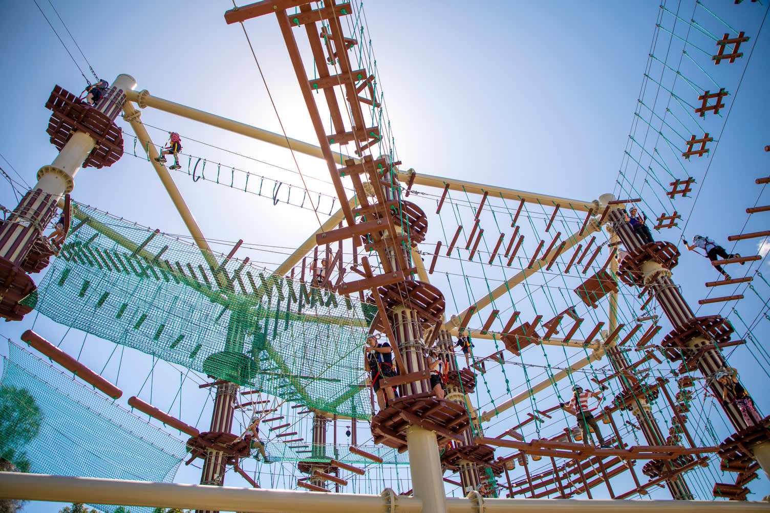 클라이밍, 스윙, 공중에서 다음 챌린지로 점프 등 다양한 활동을 즐길 수 있으며, 모든 능력과 모험심을 가진 만 6세 이상 이용객에게 적합한 코스가 준비되어 있습니다.