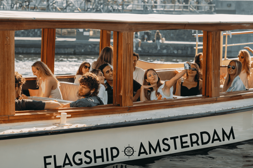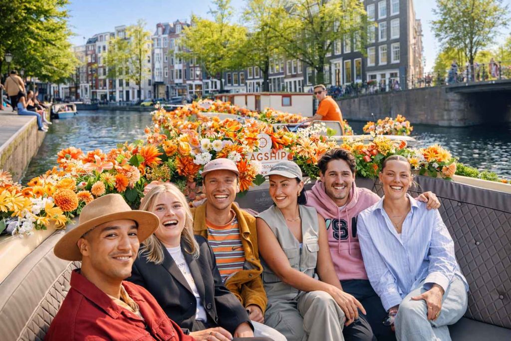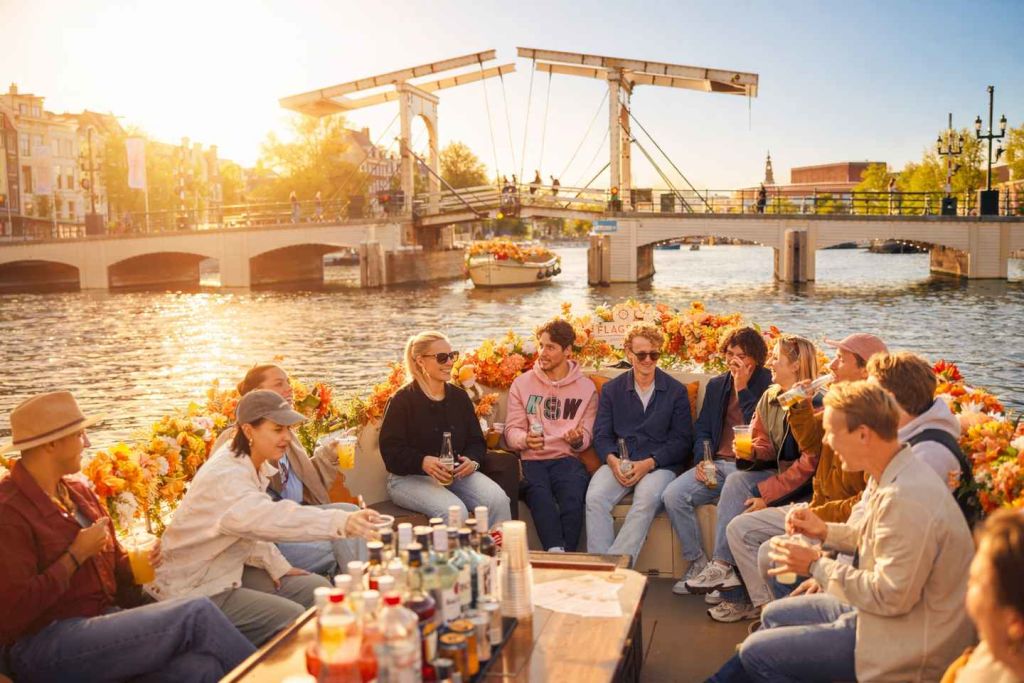암스테르담의 역사적인 운하를 따라 크루즈를 즐기며 유명한 운하 주택을 감상하세요