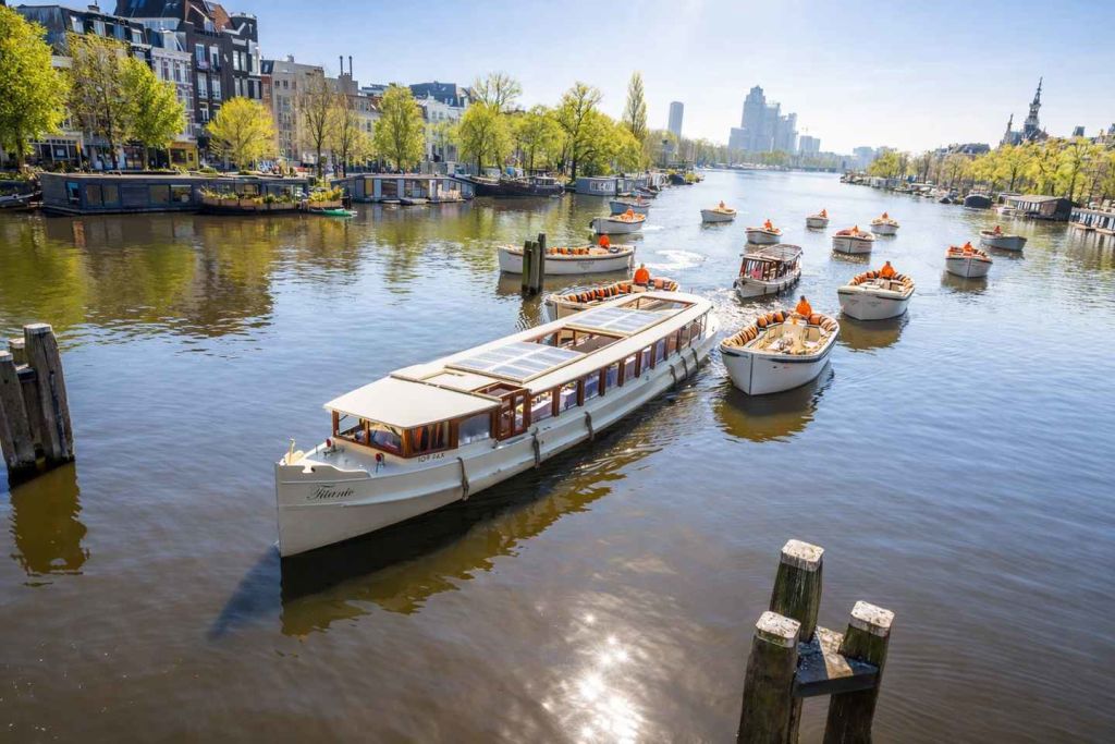 100% 전기 보트로 진행되는 운하 크루즈를 타고 암스테르담의 운하를 따라 자리한 그림 같은 랜드마크를 감상하세요. 물 위에서 도시의 유명한 랜드마크들의 놀라운 전망을 감상하고, 교통 체증 없이 여유롭게 관광하는 방법을 즐기세요.