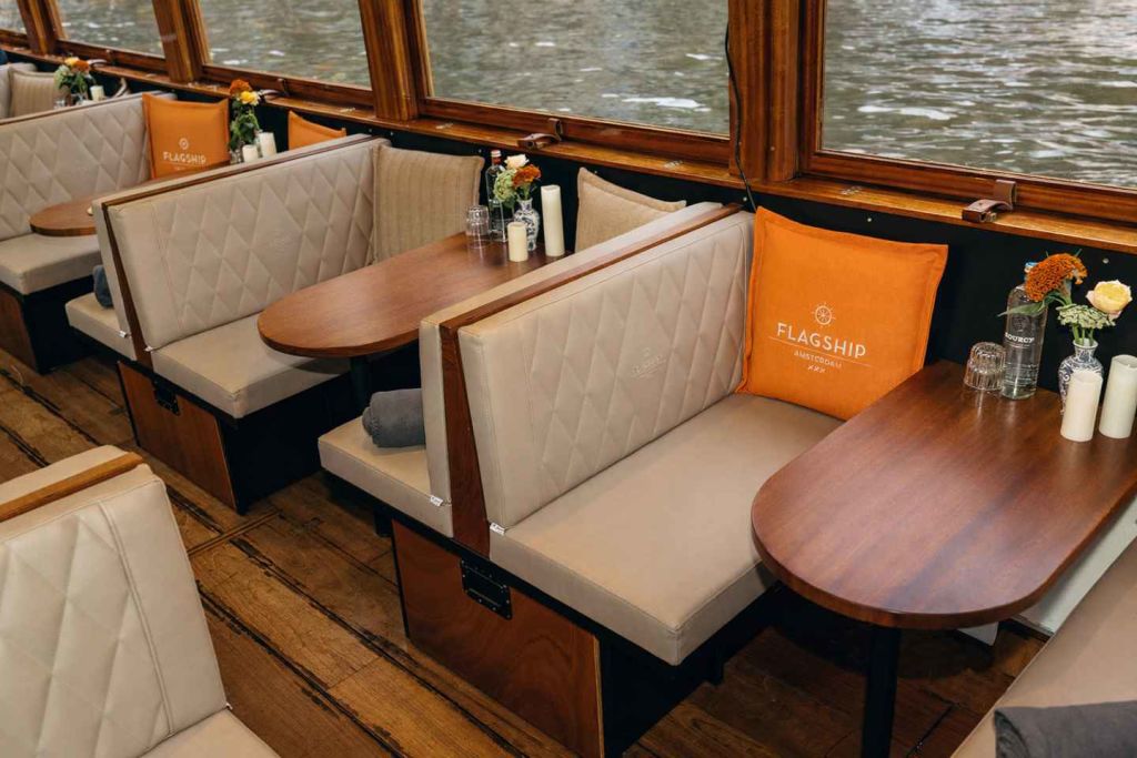 이 크루즈는 모든 날씨에 암스테르담의 운하를 즐길 수 있도록 설계되었습니다. 화창한 날에는 현대적인 오픈 보트를 타고 크루즈를 즐기게 됩니다. 선상 바에서 음료를 주문하며 야외 분위기를 만끽하며 휴식을 취하실 수 있습니다.