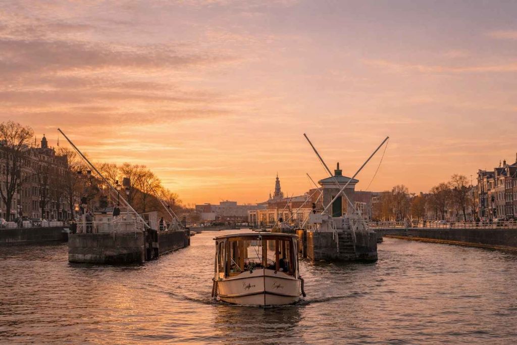예르미타시 박물관과 같은 유명한 랜드마크를 지나고, 상징적인 스키니 브리지 아래를 지나가고, 우아한 암스텔 호텔 옆을 지나며, 그라흐텐고르델(Grachtengordel)으로 알려진 매력적인 운하 지역을 탐방해 보세요.