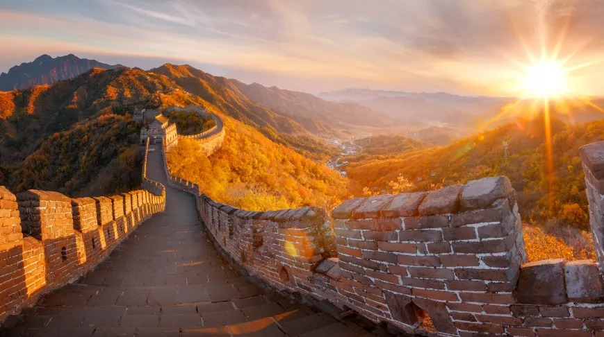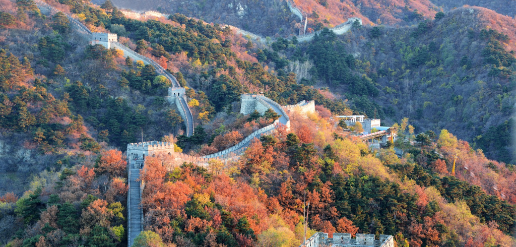 무톈위 만리장성은 명나라 시기 군사 방어 체계의 핵심 구간으로, 양면 치벽(double-sided battlements)과 독특한 구조인 ‘독수리가 위로 나는 형상(Eagle Flies Facing Upward)’이 특징입니다.