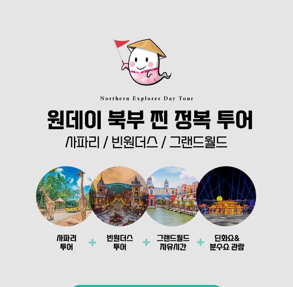 사파리, 빈원더스, 그랜드월드 등 북부 핵심 코스를 하루에 모두 체험 • 화려한 야간 엔터테인먼트⛲️ 딘화쇼와 분수쇼까지 포함된 풍성한 일정 • 편안한 이동 & 맞춤 케어🚐 현지 가이드 동행 + 시내·북부 전 지역 무료 픽업/샌딩