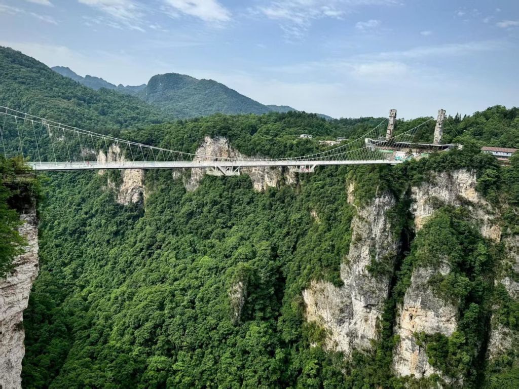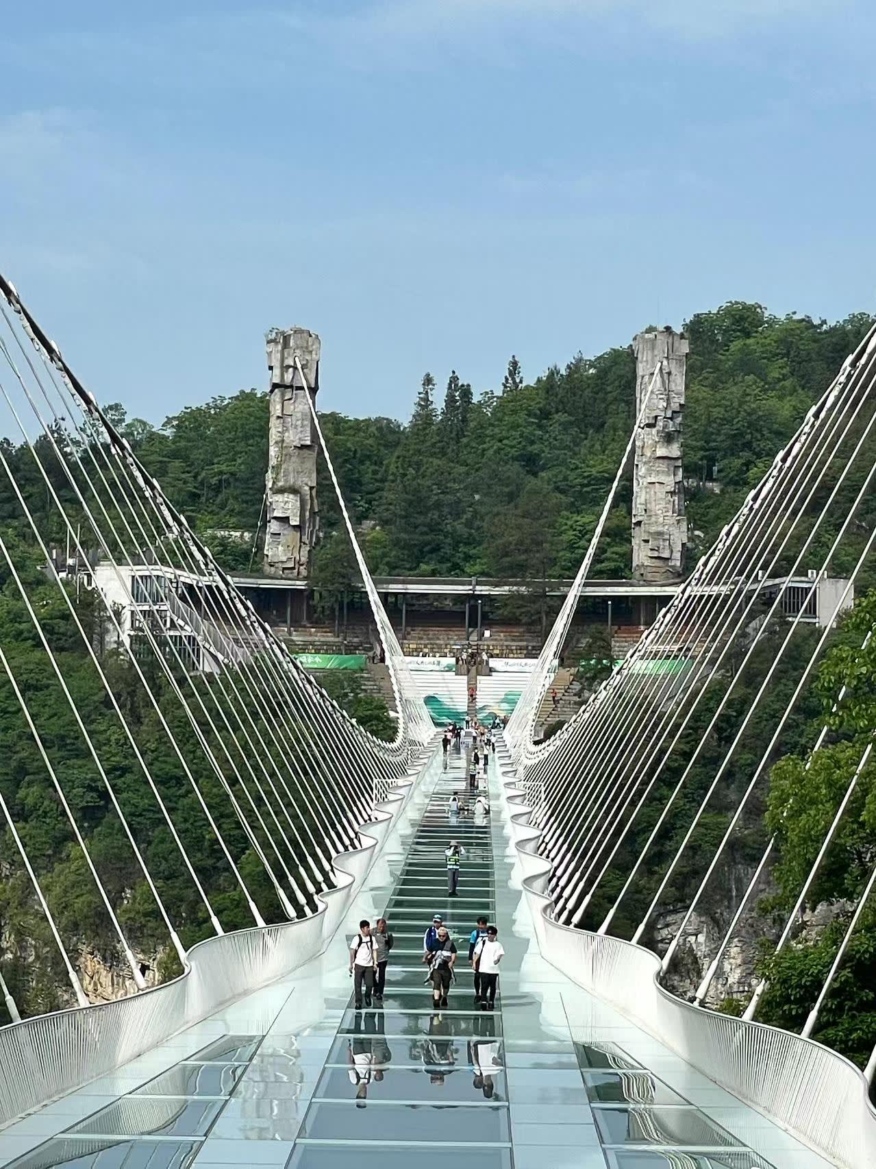 장가계 대협곡 유리 다리는 전체 길이 536m, 폭 6m로 세계에서 가장 높고 긴 유리 다리 중 하나입니다. 완전 투명한 디자인으로 관광객들은 마치 협곡 위에 매달려 있는 듯한 느낌을 받으며 발 아래 펼쳐지는 장엄한 자연 경관을 마음껏 감상할 수 있습니다.